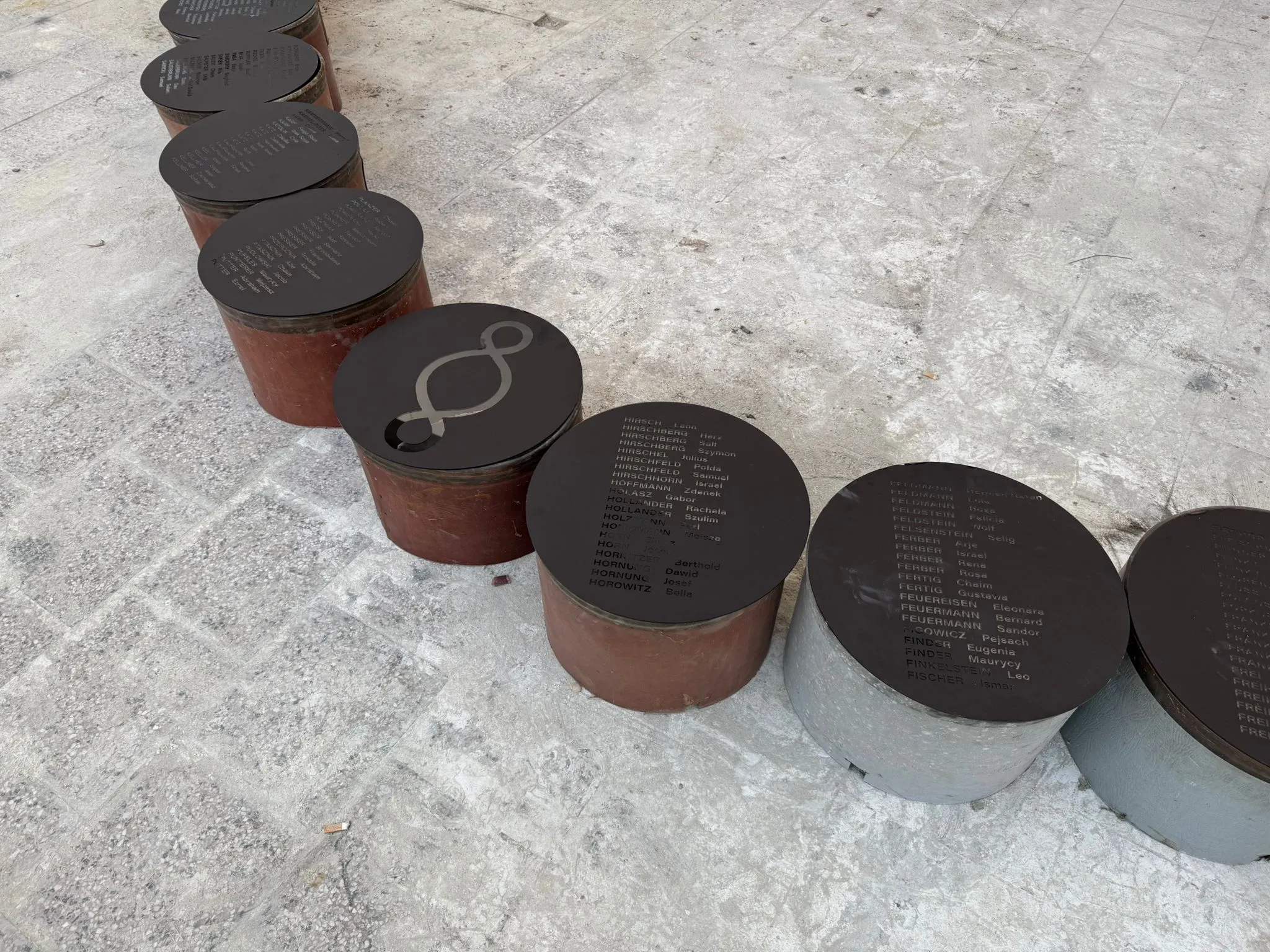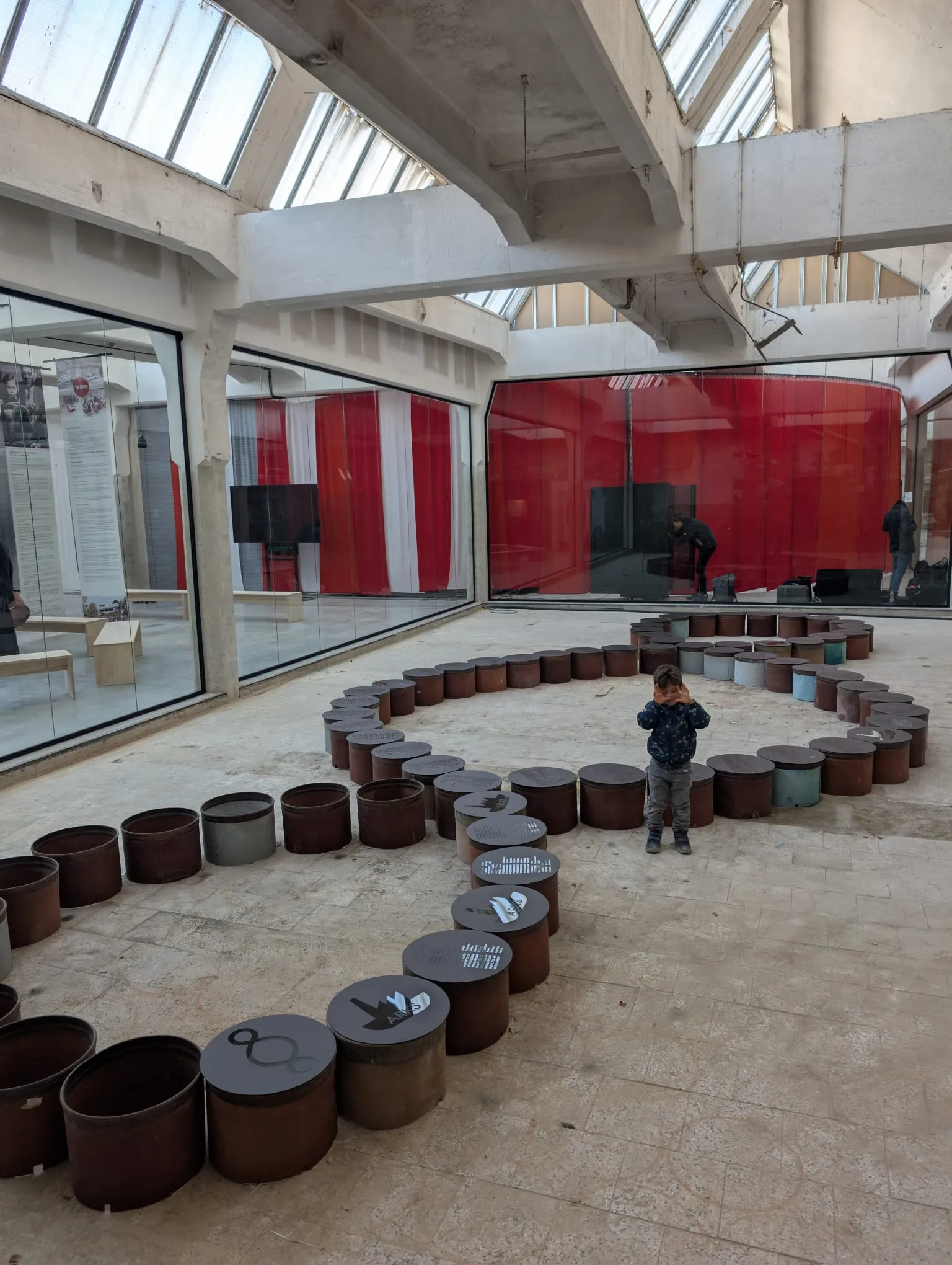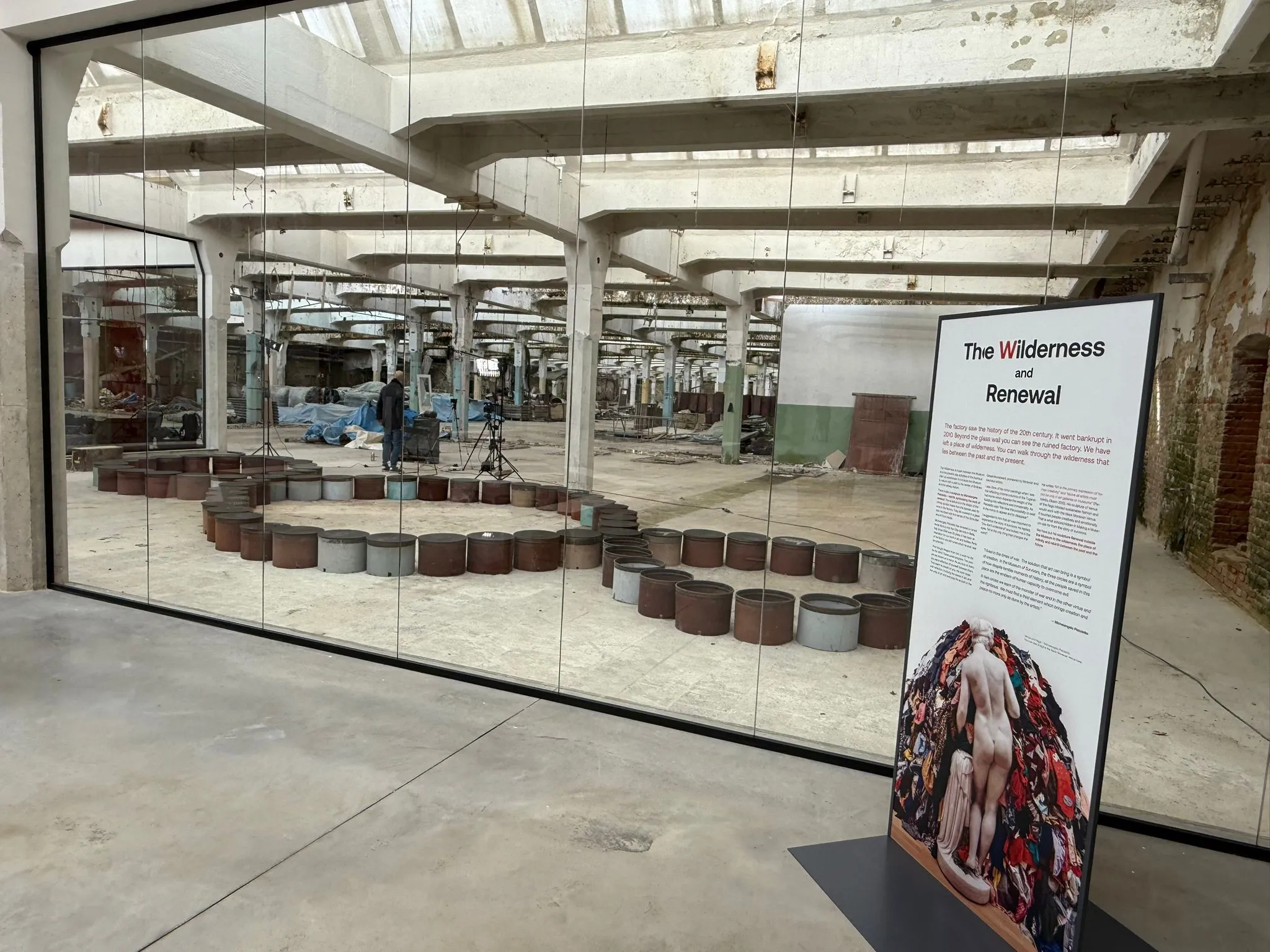In this context, an emblematic and powerful choice takes shape: the inclusion of Michelangelo Pistoletto’s Terzo Paradiso as a permanent work of the Memorial. The symbol has been integrated into the architecture of the former factory through an installation that uses the metal containers once used for raw wool. On each cylinder, now, rests a disk in which the name of a survivor is engraved, illuminated from within. The light – in a physical and spiritual sense – thus restores dignity and presence to the names, transforming the material into living memory. A composition that not only reflects the trinamic vision of the master, but reinterprets the function of the Terzo Paradiso as an active sign of testimony and future.