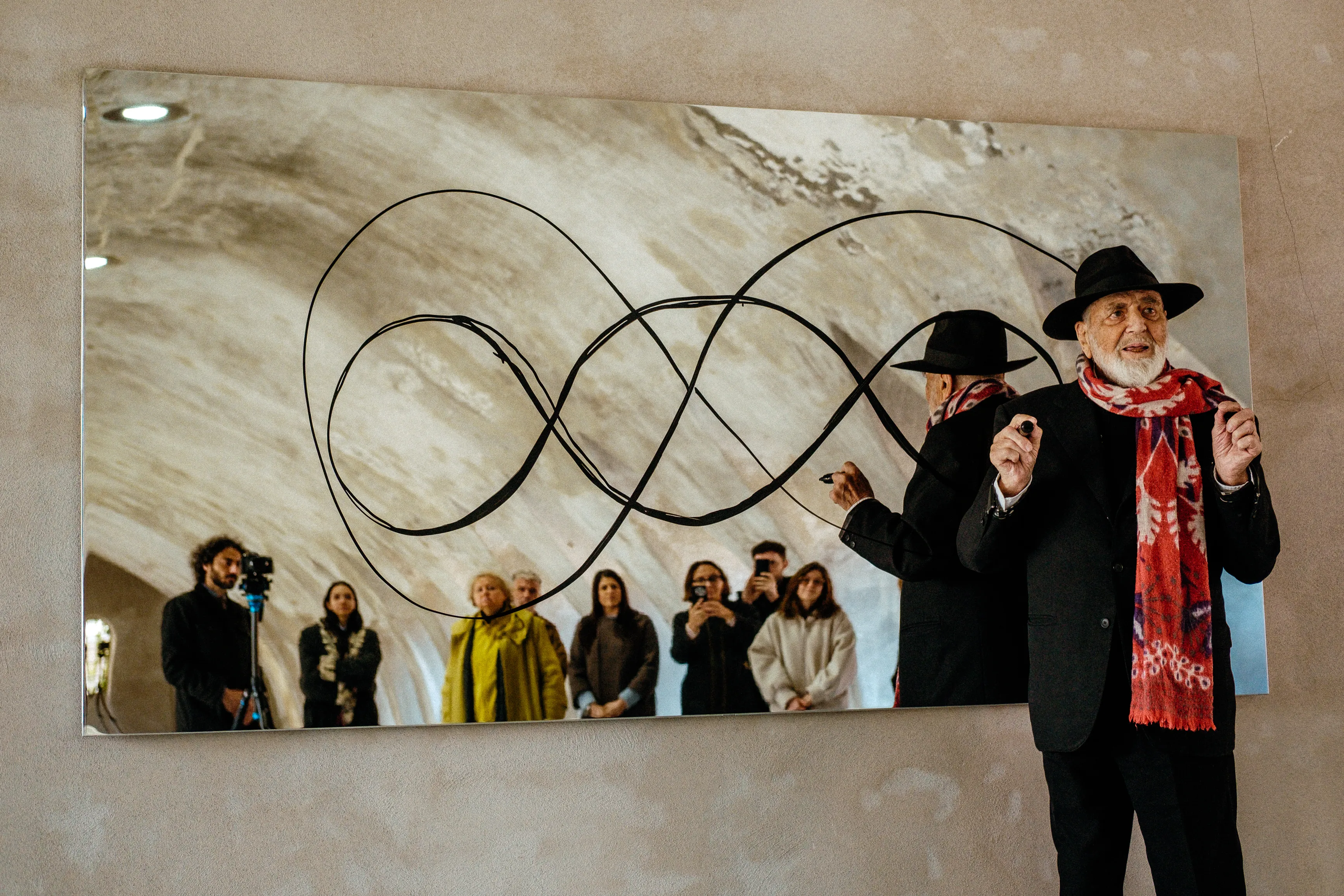 Starting on April 1, 2026, the founder of Cittadellarte, Michelangelo Pistoletto, and CIRCA launch a global collaboration in partnership with the United Nations Office for the Coordination of Humanitarian Affairs (OCHA). The result is Three Mirrors, a public art project built around three video-lectures that enter the daily flow of cities around the world.