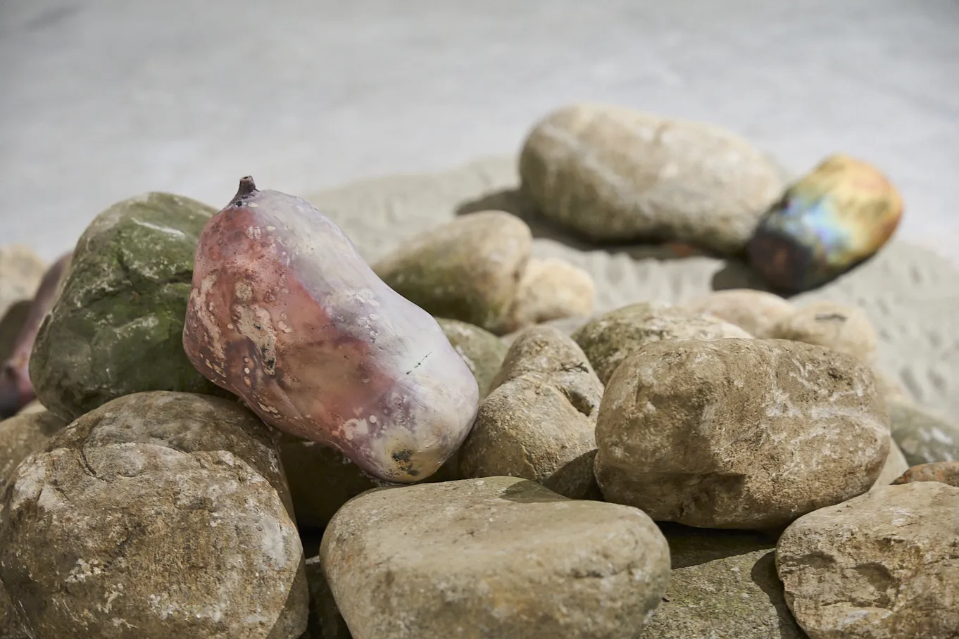 Developed in dialogue with curator Lucia Giardino, the exhibition offers an intimate look not only at the final works, but also at the research materials and experiments that accompanied their development. Charitonidi’s work explores the acoustic communication of marine mammals threatened by noise pollution, through ceramic sculptures inspired by marine fossils from Piedmont that are capable of producing evocative sounds. Tagliabue, on the other hand, reflects on the industrial poultry farming chain, incorporating organic waste materials—bones, eggshells, ashes—into bioceramic works that evoke contemporary relics and rituals.