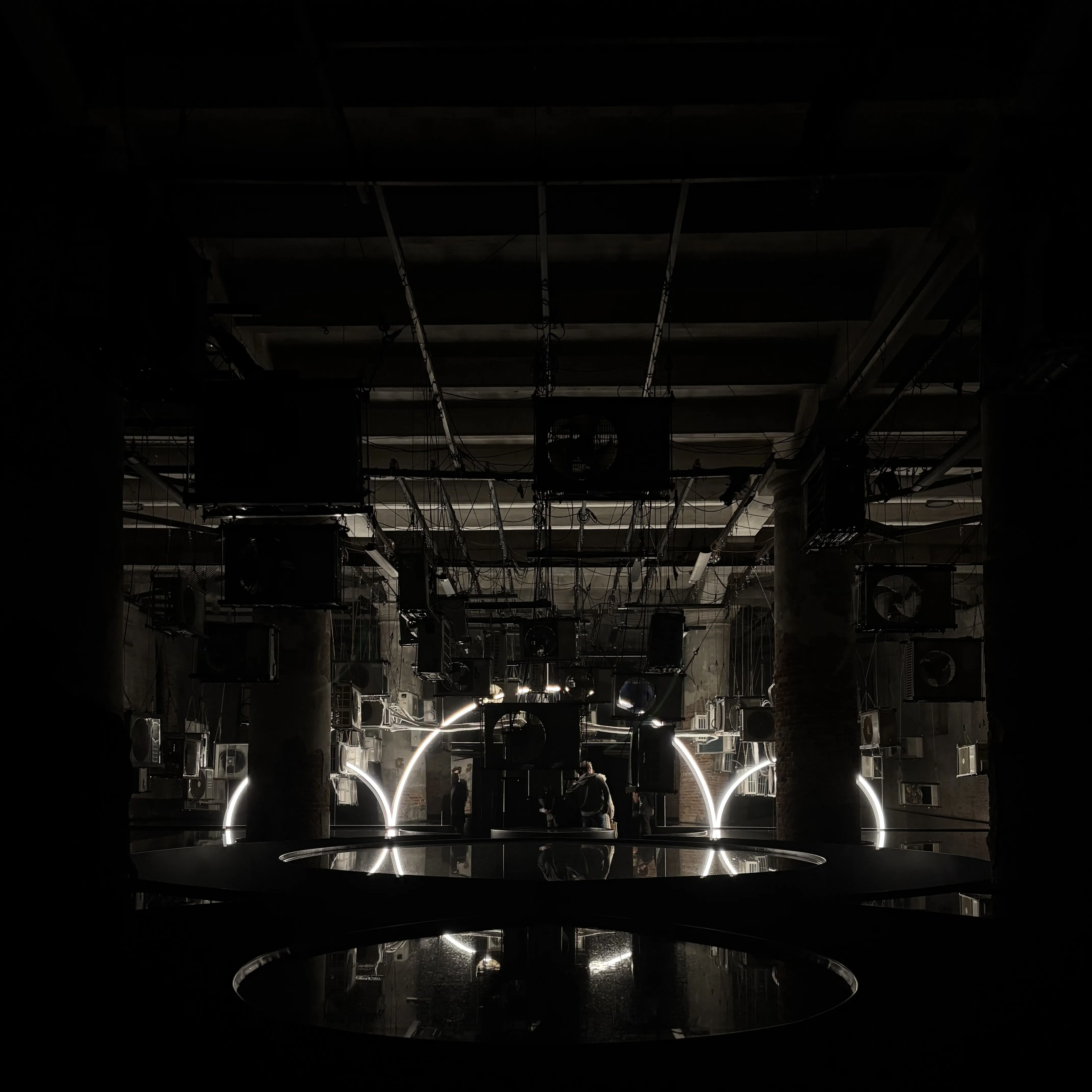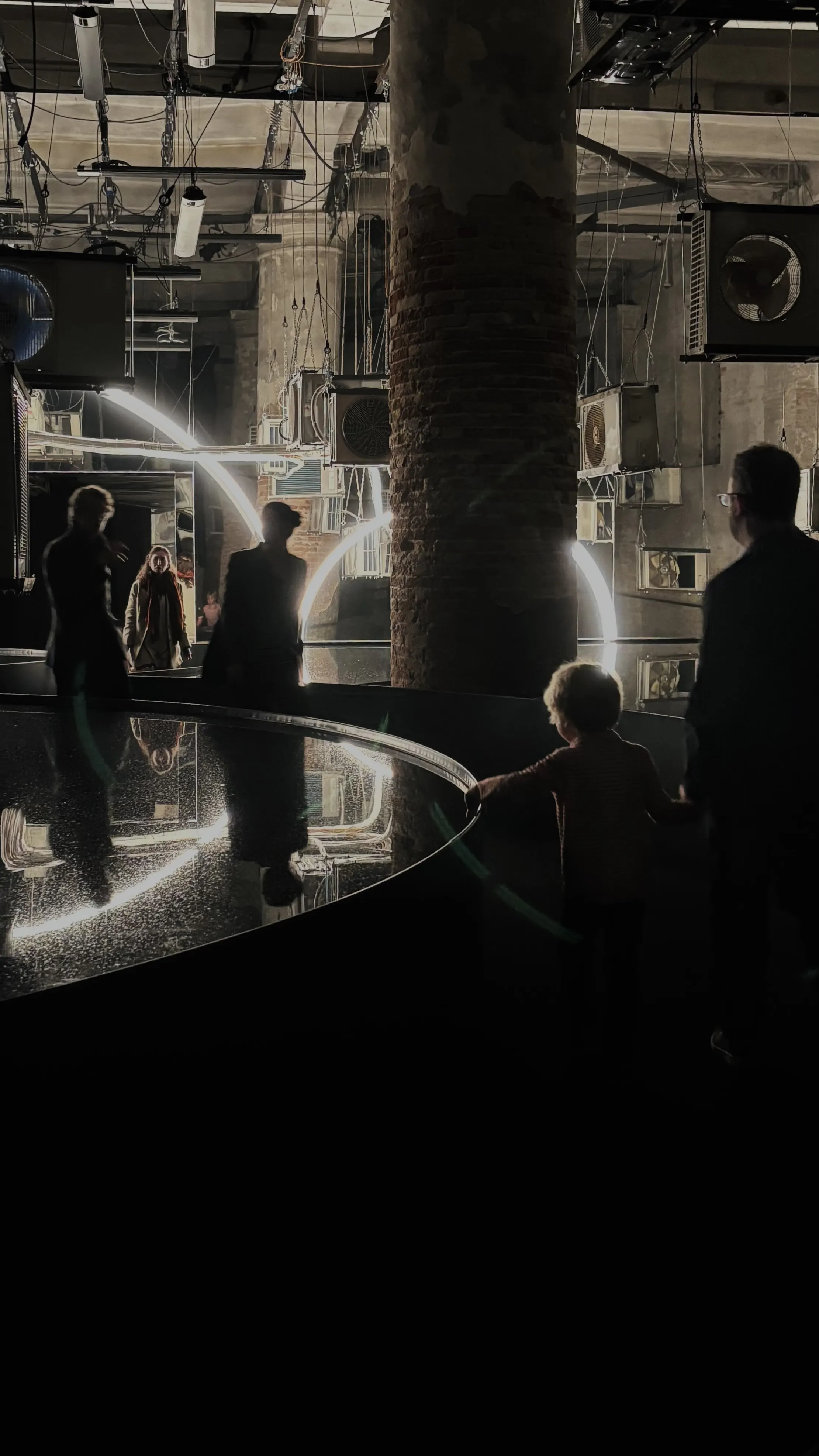 In uno scenario quasi distopico che riproduce le prospettate condizioni climatiche future di Venezia (l'installazione "Terms and Conditions" - Transsolar, Bilge Kobas, Daniel A. Barber, Sonia Seneviratne, basata sulla ricerca scientifica: Pierini, L., Hauser, M., Bresch, D. N., and Seneviratne, S. I., 2025: Venice in a Changing Climate: Literature Review. ETH Zurich), il Terzo Paradiso emerge come unica sorgente di luce e speranza, conducendo lo spettatore – letteralmente e simbolicamente – verso il cuore della Biennale e verso una visione rigenerativa del domani.
