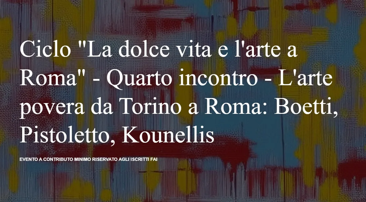 Oggi, 12 dicembre 2024, alle ore 18:30 presso Libreria Spazio Sette si terrà un incontro - curato da Ilaria Bernardi - dedicato al movimento artistico che vede il fondatore di Cittadellarte tra i protagonisti. L'evento, riservato agli iscritti FAI, è proposto nell'ambito del ciclo di eventi "La dolce vita e l'arte a Roma".