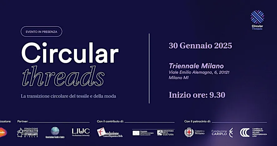 Un progetto che si concentra sull’industria tessile italiana, identificando opportunità e ostacoli per implementare modelli di economia circolare: il riferimento è a Circular Threads, iniziativa che mira ad accelerare il tasso di riciclo, riuso e recupero dei materiali nel tessile, promuovendo l’eco-design e la transizione verso un’industria più sostenibile, anche attraverso il coinvolgimento di aziende e distretti virtuosi come Biella e Prato. Sulla scia dell'appuntamento inaugurale tenutosi nel 2021, giovedì 30 gennaio 2025 andrà in scena la seconda edizione alla Triennale Milano. L'evento, intitolato Circular Threads 2.0, sarà dunque dedicato all’innovazione e alla sostenibilità nell’industria tessile e della moda; nel dietro le quinte figura Tondo, che ha organizzato la giornata insieme ai partner Fondazione Pistoletto, Associazione Tessile e Salute e LIUC Università Cattaneo. L'iniziativa gode inoltre del patrocinio del Comune di Milano, di Fondazione Cariplo e della Camera di Commercio di Milano Monza Brianza Lodi, ed è stata realizzata col contributo della Cassa di Risparmio di Biella e di Invitalia.