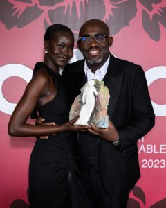 In alto da sinistra: Edward Enningful e Adut Akech; Carlo Capasa.