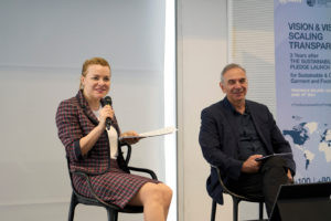 Il 19 giugno alla Triennale di Milano, a distanza di 3 anni dal lancio di "The Sustainability Pledge", si è tenuto l'evento "Vision & Visibility: Scaling Transparency", organizzato dalla Commissione economica per l'Europa dell’ONU e dalla Fondazione Pistoletto. La giornata ha preso forma attraverso un mosaico di voci e talk di relatori di autorevolezza globale - come il Segretario esecutivo dell’UNECE Tatiana Molcean, il Presidente della Camera Nazionale della Moda Italiana, l'imprenditore Gunter Pauli e la giornalista Dana Thomas, ma anche Michelangelo Pistoletto e il direttore di Cittadellarte Paolo Naldini - che sono intervenuti su differenti piani sul tema della tracciabilità e della trasparenza nelle industrie dell’abbigliamento e delle calzature. “Visione e visibilità sono connesse - ha affermato Naldini in riferimento al titolo dell'iniziativa - in una sorta di reciproco inseguimento. Quando la visione diventa visibile essa è comunicabile, può diventare traguardo, obbiettivo, può mobilitare risorse e attivare persone. Può diventare politica, unendo le persone verso un fine comune e condiviso”.