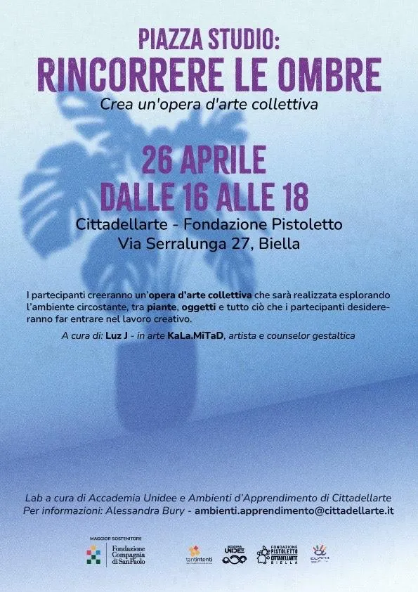 Piazza Studio: lo spazio per studenti di Cittadellarte ospita il laboratorio "Rincorrere le ombre"