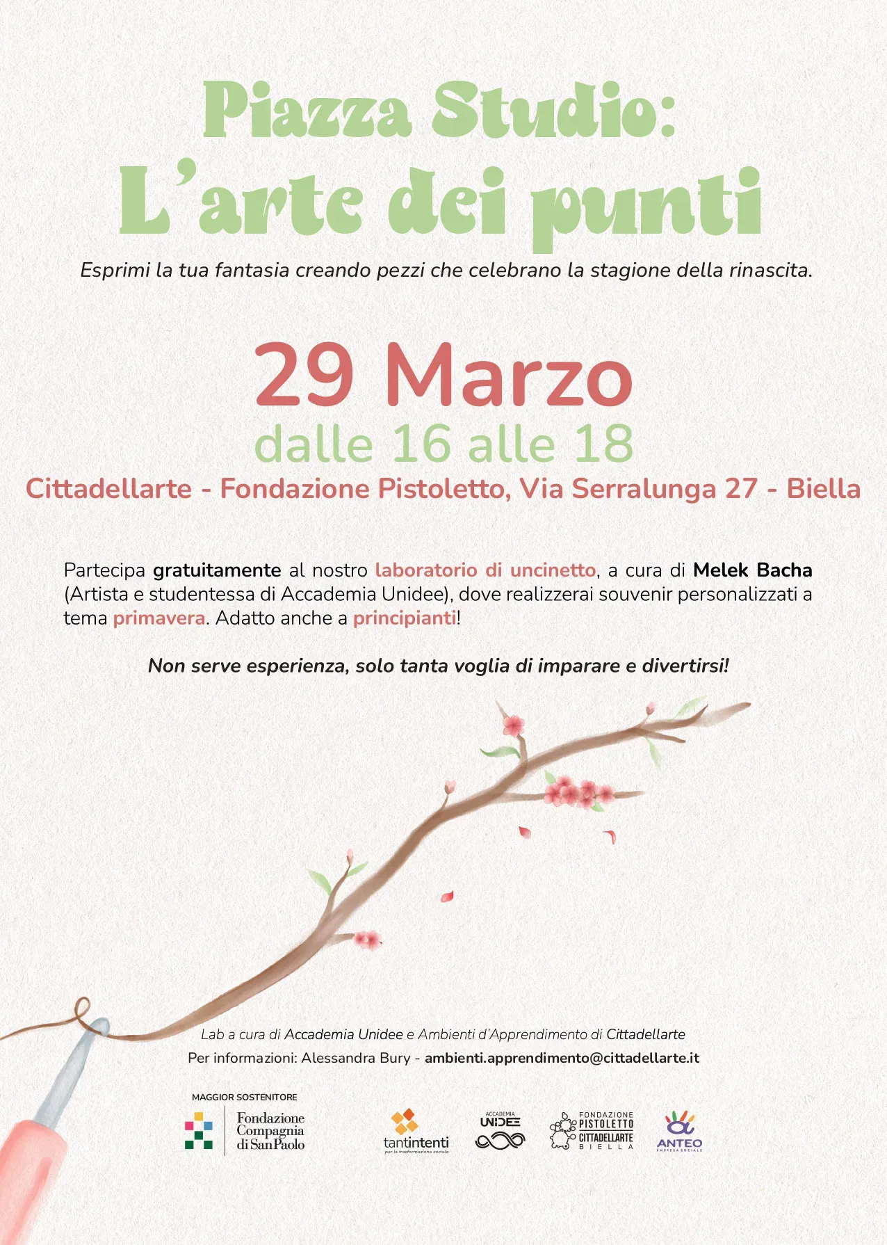 Piazza Studio: lo spazio per studenti di Cittadellarte ospita il laboratorio di uncinetto “L’arte dei punti”