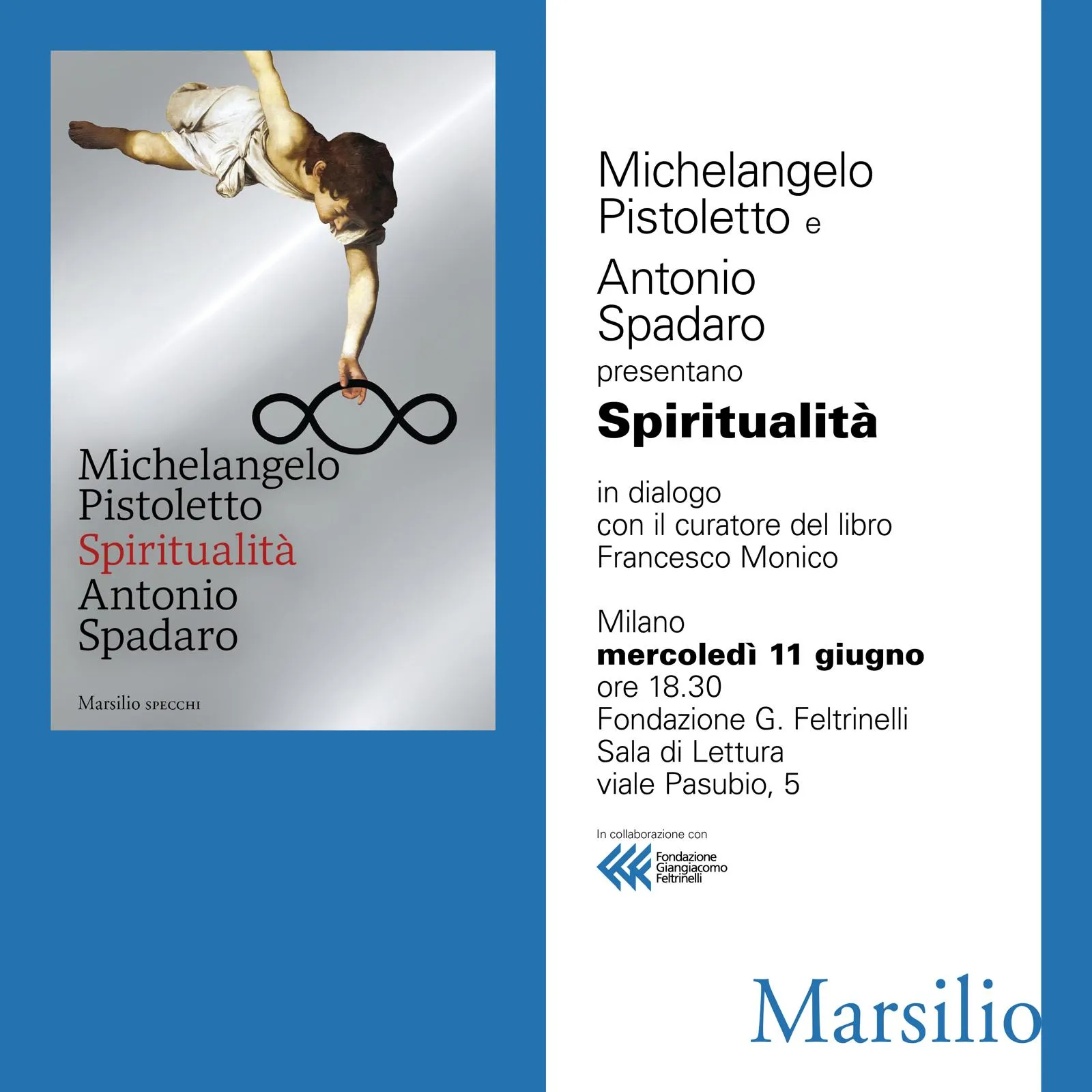 Domani, mercoledì 11 giugno 2025 alle ore 18.30, nella Sala Lettura di Viale Pasubio 5 a Milano, è in programma un nuovo incontro di presentazione del libro con la presenza degli autori. Come nelle altre occasioni, sarà Francesco Monico, curatore del volume, a moderare l'appuntamento dialogando con Michelangelo Pistoletto e Antonio Spadaro.