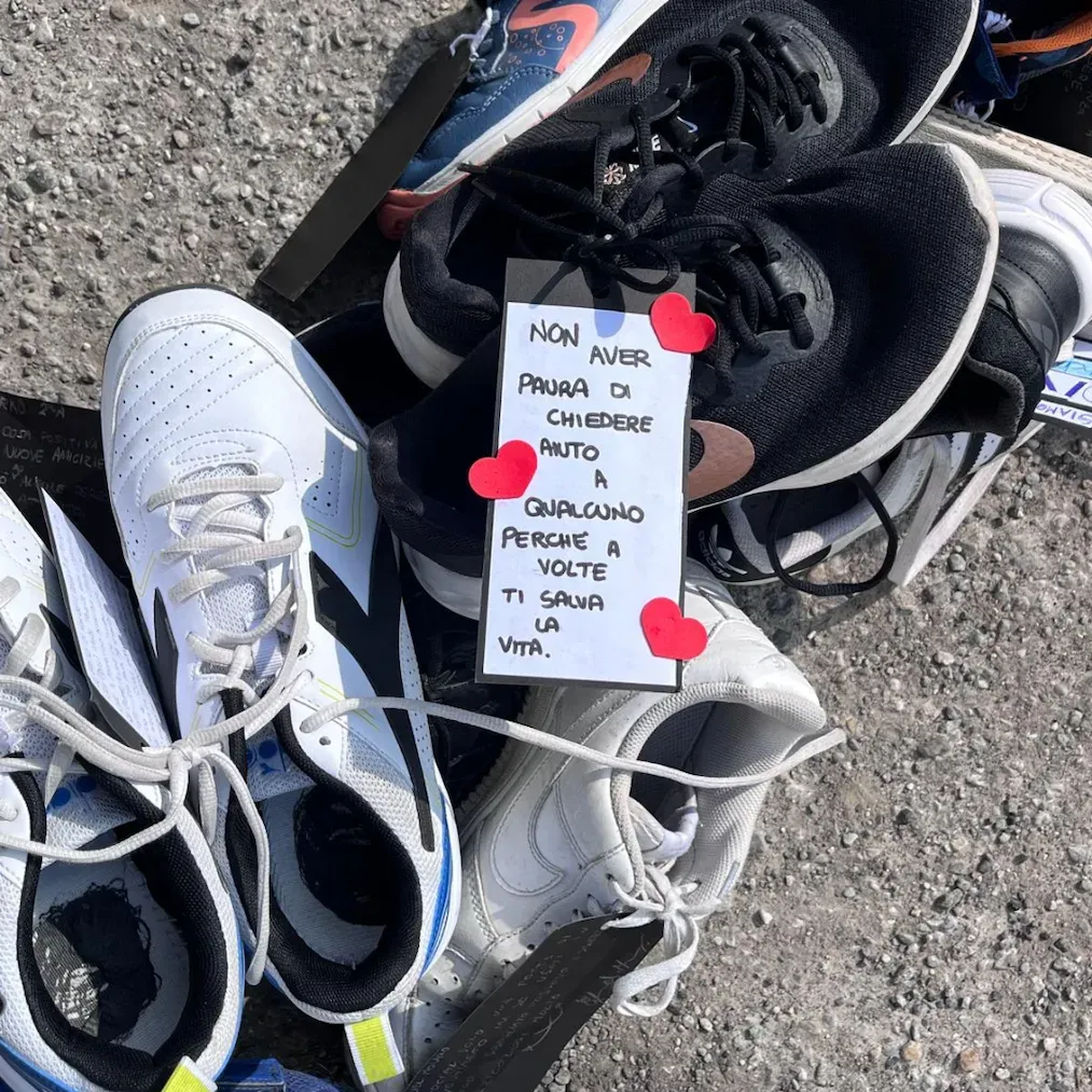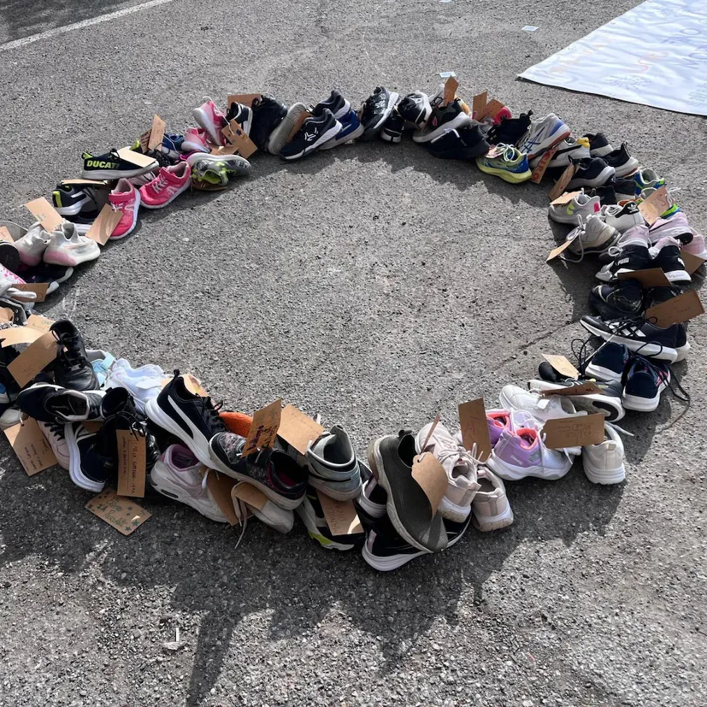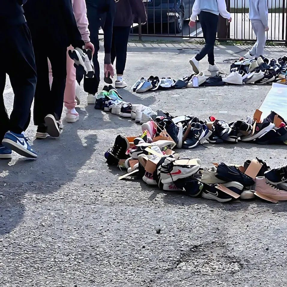 Ma il Terzo Paradiso non è rimasto solo un simbolo concettuale: si è fatto azione, gesto, presenza fisica. Gli studenti lo hanno costruito con le proprie scarpe, ognuno posizionando il proprio paio fino a comporre la forma trinamica. “Mi è venuta l’idea delle scarpe come oggetto, proprio per il concetto del mettersi nei panni degli altri, per combattere ogni forma di prevaricazione”, spiega l’insegnante. Un gesto semplice e potente, capace di trasformare il concetto di empatia in un atto concreto. Il percorso ha trovato il suo culmine il 28 febbraio 2025, in prossimità della Giornata Mondiale contro il Bullismo e il Cyberbullismo che ricorre il 7 febbraio. Quel giorno, l’installazione si è trasformata in una performance collettiva, un atto di presa di coscienza condivisa. Non un semplice gesto simbolico, ma un’opera di educazione civica nel senso più profondo del termine: ‘educare’ come dialogo, come scambio, come crescita reciproca; ‘civico’ come impegno verso la comunità, verso l’altro. “A svolgere l’attività di riflessione sull’artista e sul Terzo Paradiso sono stati gli insegnanti di arte e altri docenti, come me, che hanno voluto dedicare tempo a questo progetto”, racconta Zullo. “La nostra dirigente, Raffaella Piatti, professoressa di arte, ha accolto con entusiasmo l’iniziativa e ci ha dato completa disponibilità”.