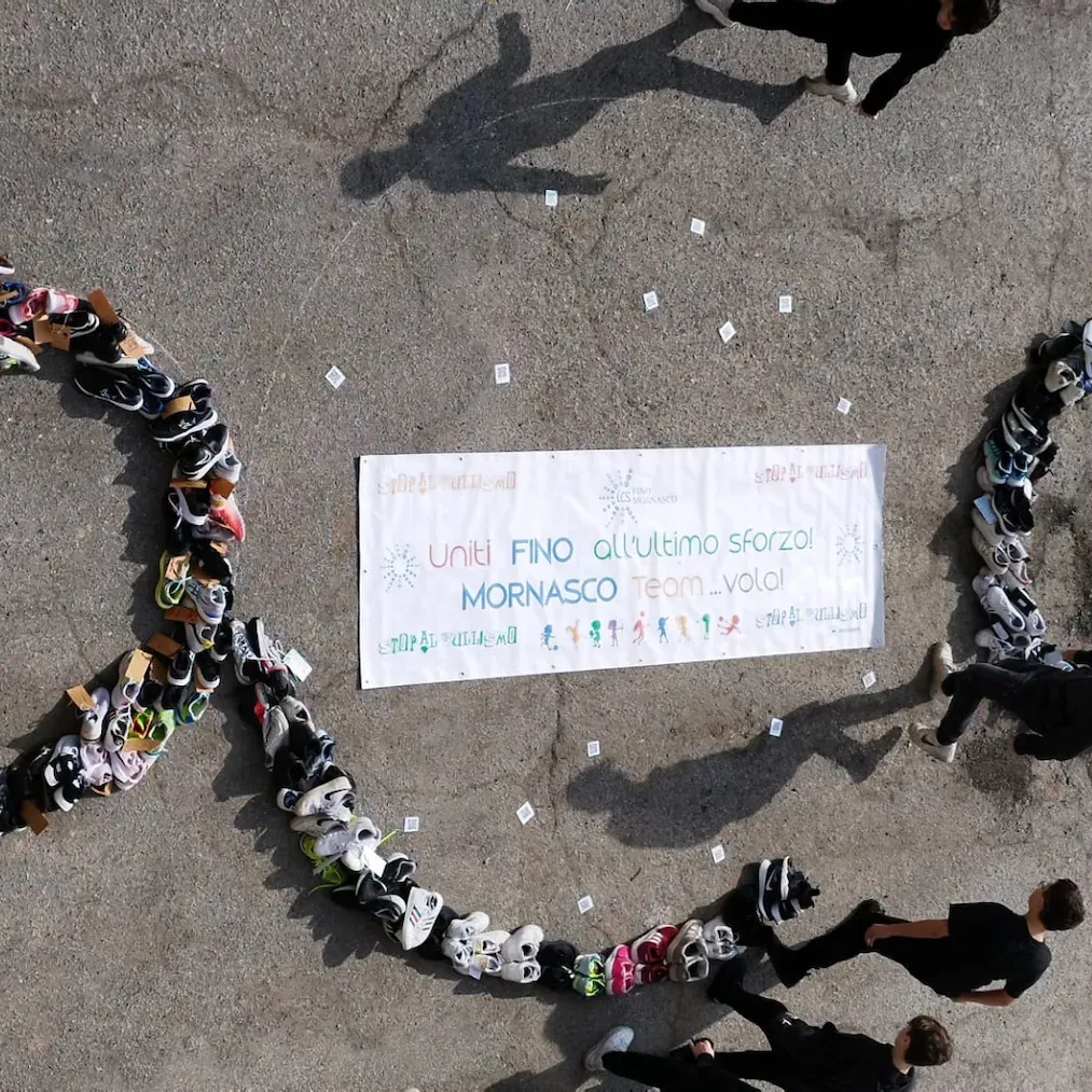 Alla Scuola Secondaria Giovan Battista Scalabrini di Fino Mornasco, il simbolo trinamico di Michelangelo Pistoletto diventa il fulcro di un percorso educativo innovativo, che intreccia arte e riflessione per affrontare il tema del bullismo. Gli studenti hanno esplorato il potere delle parole, tracciando i confini tra rispetto e prevaricazione e tra dialogo e conflitto. Ogni classe ha contribuito con un diverso livello di approfondimento: dalla costruzione di un dizionario di termini empatici fino alla riflessione sull’impatto dei social media. Il 28 febbraio, giornata simbolica di sensibilizzazione, il percorso si è concretizzato in una grande installazione collettiva: un Terzo Paradiso composto da scarpe, parole e significati, specchio di una nuova consapevolezza. Un’esperienza che conferma come l’arte possa generare alternative alla noncuranza, all’indifferenza, all’esclusione.