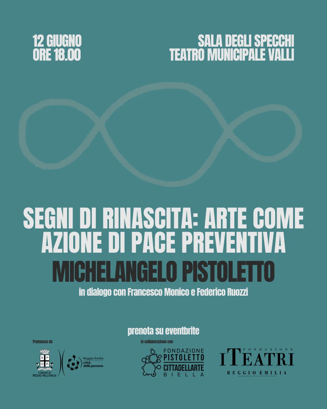 Pistoletto sarà poi protagonista alle 18, nella Sala degli Specchi del Teatro Valli, di un momento di riflessione pubblica dal titolo Segni di Rinascita: L’Arte come Azione di Pace preventiva, promosso dal Comune di Reggio Emilia in collaborazione con Cittadellarte e Fondazione I Teatri di Reggio Emilia. L’evento sarà introdotto da Giacomo Bassmaji - architetto, ambasciatore del Terzo Paradiso di Reggio Emilia e curatore di eventi culturali - e vedrà il contributo di Francesco Monico, professore di Archetipi dell’immaginario e di Filosofia della tecnica, e Federico Ruozzi, associato di storia del cristianesimo presso il Dipartimento di Educazione e Scienze Umane dell’Università di Modena e Reggio Emilia. Al centro dell’incontro il concetto di Pace Preventiva, elaborato dall’artista candidato al premio Nobel per la pace 2025 all’indomani della guerra in Iraq, e oggi sviluppato come forma d’impegno concreto per una trasformazione responsabile della società. Il dialogo esplorerà i punti di contatto tra arte, etica e spiritualità, oltre al ruolo delle religioni nella costruzione di un mondo fondato sulla cooperazione e il rispetto reciproco. Nella visione di Pistoletto, infatti, l’arte diventa ponte tra culture e strumento attivo di rigenerazione sociale, promotrice di pace, spiritualità e responsabilità condivisa.
