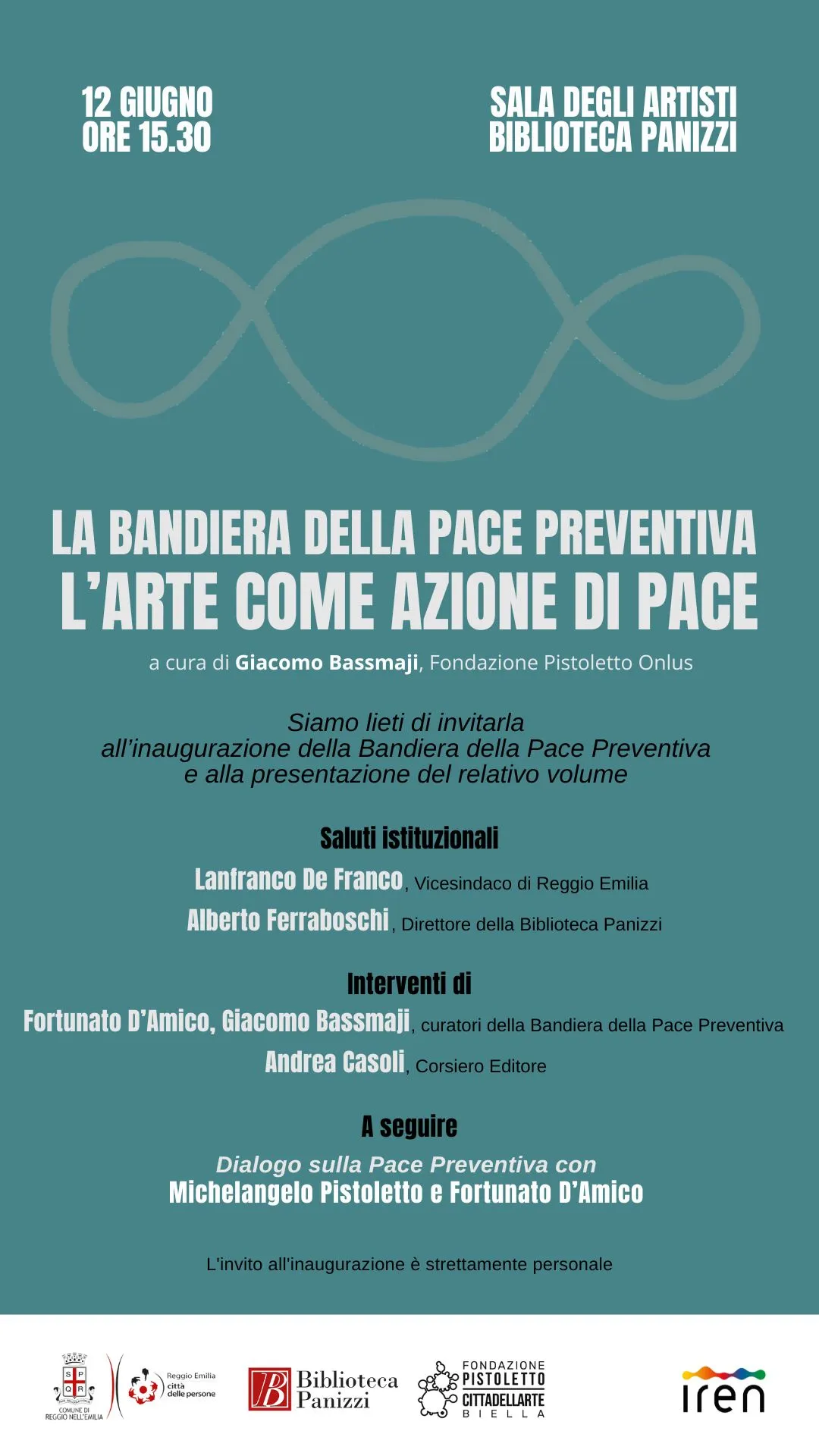 Il 12 giugno è previsto un doppio evento che vedrà protagonista il fondatore di Cittadellarte: alle 15.30, presso la Sala degli Artisti della Biblioteca Panizzi, si terrà l'inaugurazione della Bandiera della Pace Preventiva, mentre alle 18.30 è in programma il convegno "Segni di rinascita: L’arte come azione di pace preventiva” nella Sala degli Specchi del Teatro Valli.