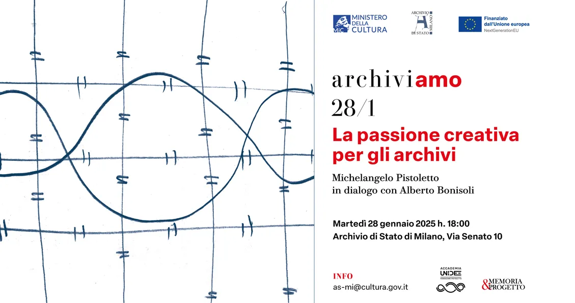 Michelangelo Pistoletto e i prossimi appuntamenti Il terzo appuntamento della rassegna, che si svolgerà martedì 28 gennaio alle 18 presso la Sala Conferenze, vedrà come ospite Michelangelo Pistoletto. Il maestro, per l’occasione, dialogherà con Alberto Bonisoli, già ministro della Cultura, offrendo una prospettiva originale sul rapporto tra archivi e creatività artistica e sottolineando come la memoria possa essere uno stimolo per l’innovazione e l’immaginazione. L’incontro, proposto anche dall’Accademia Unidee, sarà introdotto dal direttore dell’Archivio di Stato di Milano Stefano Leardi. Il quarto incontro, previsto per giovedì 13 febbraio 2025, sarà infine dedicato al teatro e al cinema con la presenza di Mario Martone e di Alberto Bentoglio dell’Università degli Studi di Milano.