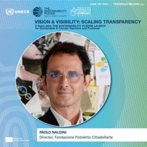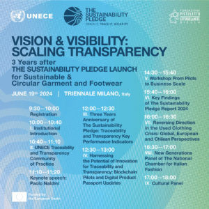 L'evento Vision and Visibility: Scaling transparency del 19 giugno vede nel dietro le quinte non solo UNECE, ma anche la Fondazione Pistoletto con Fashion B.E.S.T.: nel programma, ad esempio, è previsto un talk - in programma alle ore 11.20 - che vedrà conversare Paolo Naldini, direttore di Cittadellarte, con Marco Sammicheli (design, fashion e crafts curator alla Triennale Milano e direttore dell'Italian Museum of Design). Non solo: alle 17 si terrà l'incontro conclusivo della giornata, il cultural panel intitolato The state of the fashion industry, traceability and transparency from a cultural perspective che annovererà tra i relatori Michelangelo Pistoletto. L'appuntamento, moderato da Luisa Zargani (Milan Bureau Chief, WWD), vedrà intervenire anche il filosofo Emanuele Coccia (filosofo), Gunter Pauli e Dana Thomas (autrice, Fashionopolis).