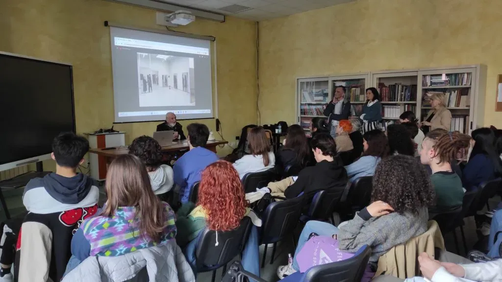 Un frammento dell’incontro con Michelangelo Pistoletto al Liceo Leonardo Da Vinci, marzo 2024.