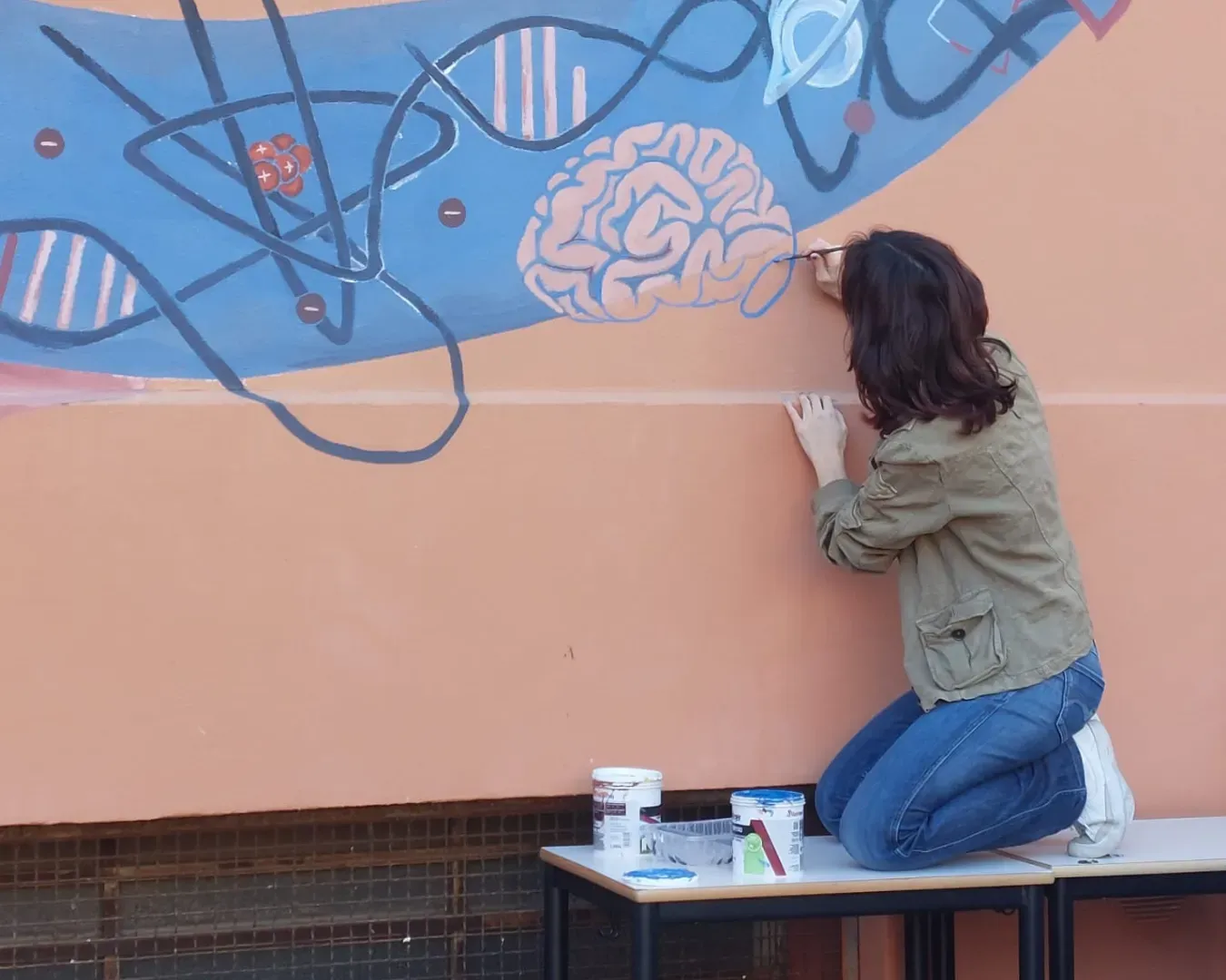 Riflessione, condivisione, unione, diffusione: questi sono i principi che hanno guidato la realizzazione di un murale di grandi dimensioni che ogni mattina accoglie studenti, docenti e collaboratori all’ingresso del Liceo Leonardo Da Vinci di Casalecchio di Reno, in provincia di Bologna. Osservando l’opera, emerge subito la cura e la passione con cui gli studenti hanno dato vita al progetto. Un’iniziativa interamente loro, in cui ogni pennellata esprime un’idea, un desiderio, un impegno per il futuro. “Hanno fatto tutto gli alunni. Dalla progettazione alla realizzazione, il murale riflette – racconta Doriana Russo, docente di disegno e storia dell’arte e referente principale del progetto – le idee emerse dalle riflessioni degli studenti, supportati dagli insegnanti e dai professionisti esterni coinvolti”.