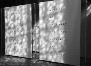 L’installazione Le siepi di Joel Auxenfans, frutto di una coproduzione tra il Consiglio Dipartimentale dell’Orne e la Regione Normandia con il sostegno della Direzione Regionale degli Affari Culturali della Normandia, ha iniziato il suo itinerario di presentazioni all’Ecomuseo del Perche a Saint Cyr la Rosière, in Normandia, dal 13 ottobre al 23 dicembre 2018. La seconda tappa è stata a Biella, a Cittadellarte - Fondazione Pistoletto, a ottobre 2019. Il sistema espositivo delle ‘siepi’ è costituito da una struttura in legno e alluminio di 2.25 mt di altezza, 1.26 mt di larghezza e 20 mt di lunghezza, a sostegno di teloni stampati con testi di Malgorzata Grygielewicz, filosofa, di Michelangelo Pistoletto, artista, e di Valérie Cabanes, giurista. Le scritte, riportate in maiuscolo e senza punteggiatura come in epoca romana, evocano un mondo radicato e insieme in divenire, un mondo di pensiero in movimento e di creazione, a formare un fogliame di lettere in cui lo spettatore può vagare liberamente. L’installazione in spazi chiusi fa da eco al processo artistico che si svolge all’aperto, nel paesaggio rurale vicino a produttori bio o a luoghi di passaggio, e consiste in piantumazioni di vere siepi, costituite da alberi o arbusti diversi.