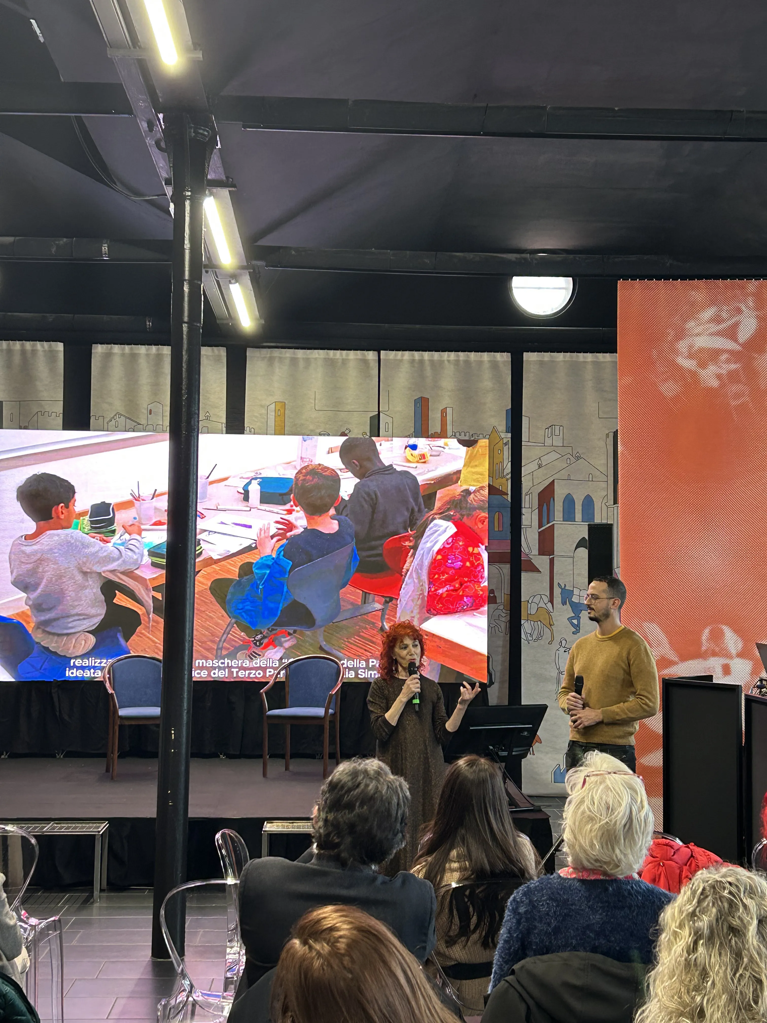 La mattina è proseguita con i racconti degli ambasciatori. Grazia Simeone e Alessandro Alliaudi hanno presentato un progetto realizzato a Monaco, nato due anni prima. Grazia ha condiviso il suo lavoro, costruito grazie a una rete di relazioni, che ha coinvolto scuole, studenti, famiglie, associazioni. "Abbiamo lavorato con circa 800 studenti e 2mila persone", ha spiegato, alternando dimensioni digitali, analogiche e pratiche laboratoriali. Ritmi serrati, workshop, incontri continui, ma anche un grande riconoscimento da parte della cittadinanza. Alessandro ha sottolineato invece l’impatto sui più giovani: "I bambini sono sempre i primi a capire il Terzo Paradiso fino in fondo". Ha illustrato il momento in cui, davanti a una plenaria di bambini delle elementari, il segno trinamico è stato spiegato e poi mostrato attraverso immagini di grandi installazioni nel mondo. "Si sentiva - ha confidato - la loro emozione nello scoprire il simbolo".