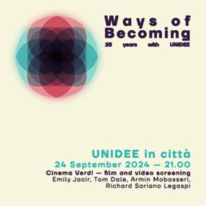 Il Cinema Verdi – 24 settembre, ore 21:00 L’arte, attraverso le sue molteplici forme e linguaggi, coinvolgerà il Cinema Verdi attraverso una serata dedicata alle proiezioni di lungo e cortometraggi sviluppati su focus tematici connessi alla residenza, alla socially engaged art e alle urgenze contemporanee su cui gli artisti UNIDEE sono attualmente impegnati. Quali saranno le opere filmiche visionabili? Il documentario Letter to a friend (2019) di Emily Jacir; i corti A Cage For Voices (2017), The Red Zone (2018), The Words You’ll Never Hear (2018) di Tom Dale; la fiction Tomatoes Tree (2016) di Armin Mobasseri. Scopriamo, nel dettaglio, tutti protagonisti dei film e dei video screening: Aleksandrija Ajduković, David Behar Perahia, Lindsay Benedict, Tom Dale, Gluklya, Mako Ishizuka, Hiba Isleem, Charlie Jeffery, Eleni Kamma, Olga Ledis, Richard Legaspi, Walid Maw'ed, Armin Mobasseri, Anastasia Ryabova, Kosta Tonev.