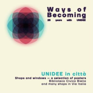Le vetrine di via Italia (Biella) Riavvolgendo la collana dei ricordi, gli artisti che nel tempo hanno vissuto la città attraverso i programmi di residenza UNIDEE hanno riassunto in una serie limitata di otto poster brevi frasi momenti ed esperienze vissute tra le persone, la natura e le diverse realtà biellesi. Messaggi che possano diventare finestre sul presente ma che portano il ricordo del tempo passato a UNIDEE. Questi interventi estendono la mostra oltre gli spazi fisici di Cittadellarte, per evidenziare come il programma di residenza artistica abbia intrecciato relazioni con lo spazio pubblico, le persone e i processi di trasformazione della città nel corso dei 25 anni di UNIDEE. I negozi del centro cittadino biellese, in particolare quelli situati in Via Italia, per celebrare con la città e i suoi abitanti i 25 anni di UNIDEE Residency Programs, sono stati invitati a prendere parte a un vero e proprio racconto artistico a cielo aperto attraverso un allestimento dei manifesti realizzati dagli artisti.
