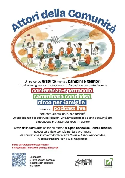 Un percorso in cui le famiglie non sono semplici spettatrici, ma protagoniste attive di un’esperienza culturale e relazionale condivisa. È questo lo spirito di Attori della Comunità, il progetto che nei prossimi mesi animerà Gaglianico e Biella con incontri, momenti di approfondimento e occasioni di spettacolo pensati per genitori e figli.