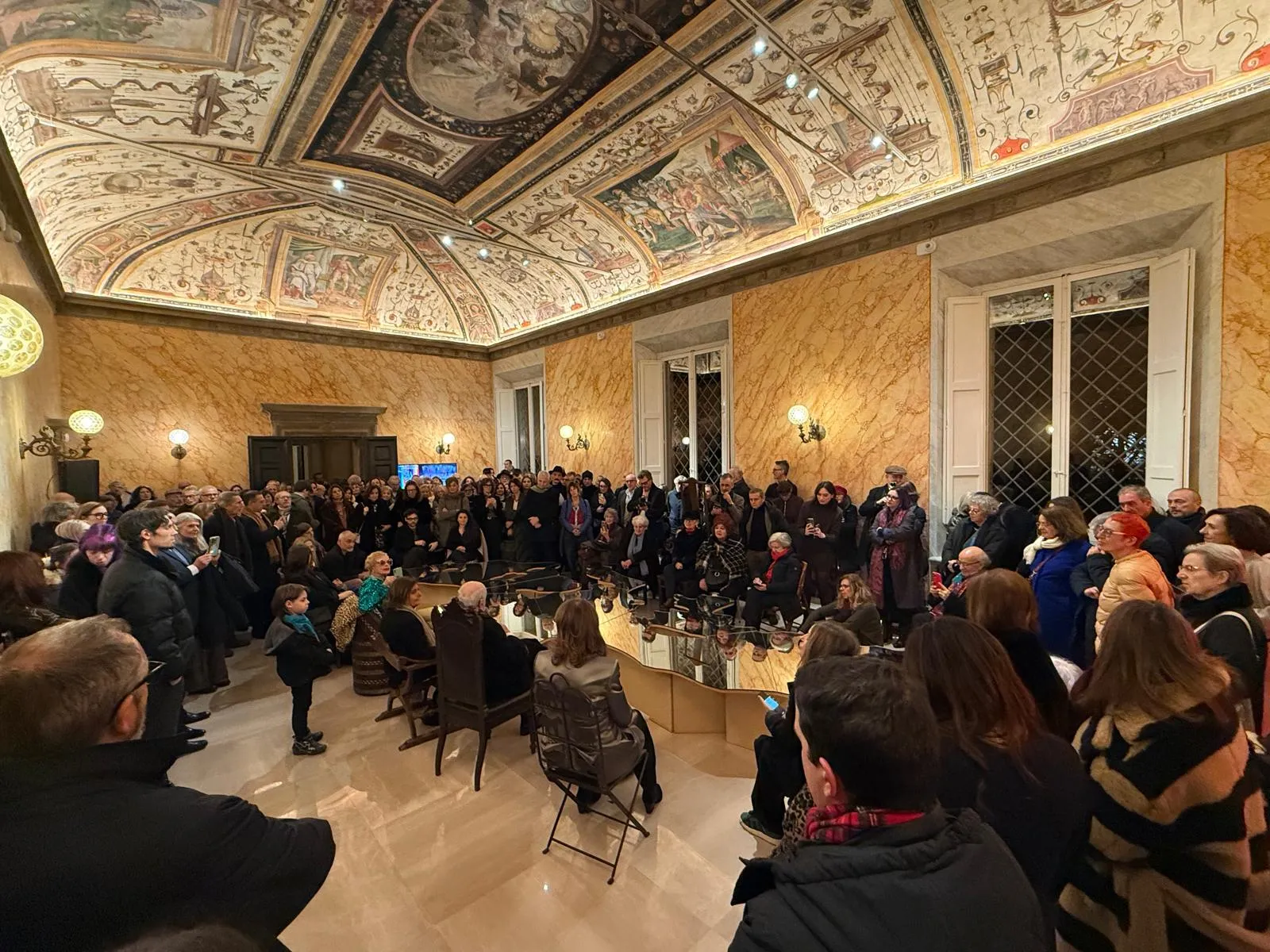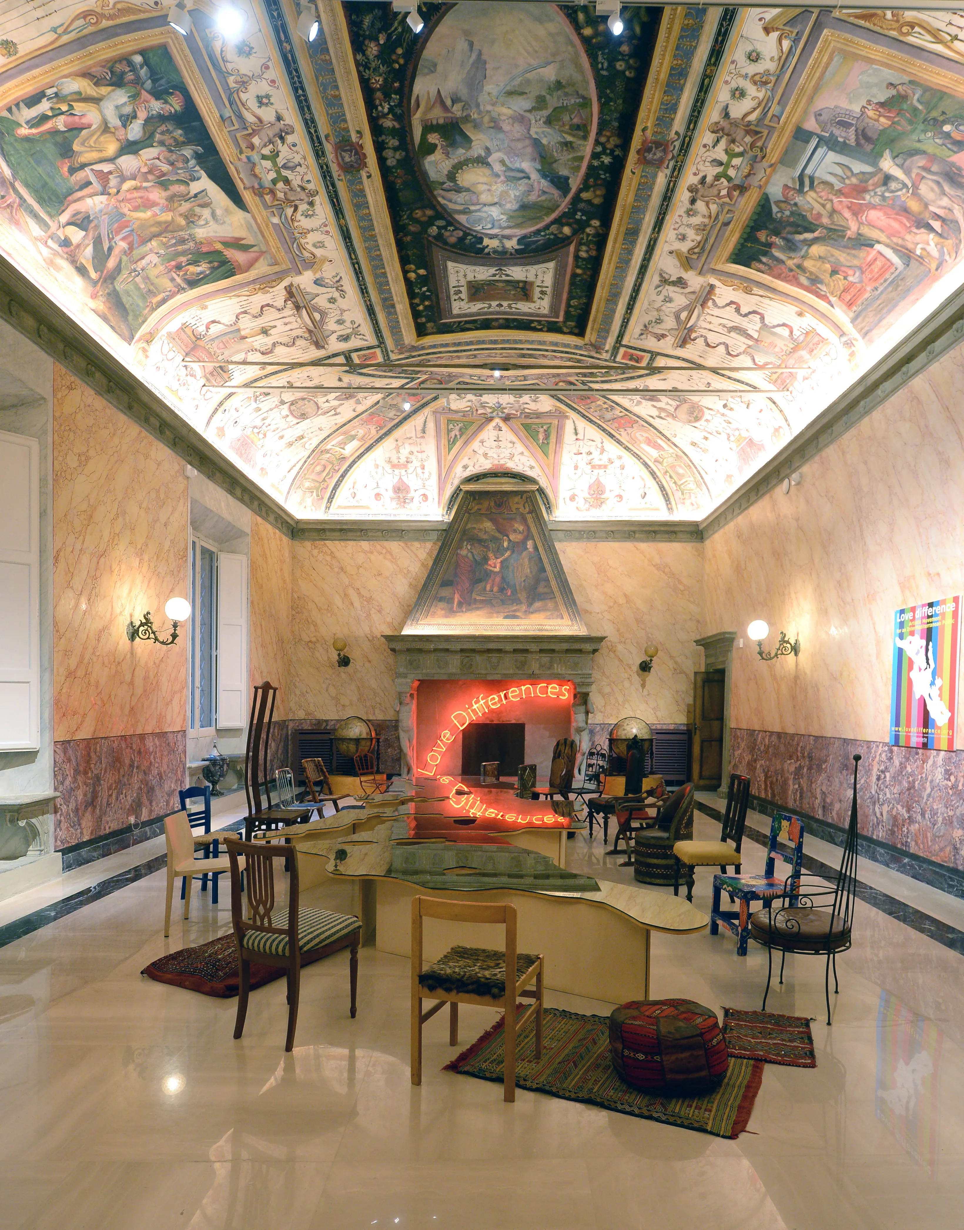 C’è un momento preciso, durante l’opening serale della mostra Michelangelo Pistoletto. Dalla Cittadellarte allo Statodellarte, in cui Palazzo Boncompagni ha smesso di essere soltanto uno spazio espositivo. È diventato qualcos’altro: un organismo attraversato da corpi, sguardi, conversazioni, stupore. Le sale piene, densamente abitate; i visitatori che si muovevano lentamente - non solo per la quantità di persone -, come se avvertissero che in quel luogo l’arte non chiedesse solo di essere guardata, ma di essere compresa, assunta, praticata. La stessa vibrazione aveva attraversato, poche ore prima, la conferenza stampa del mattino: giornalisti non sono stati riuniti davanti alla consueta formalità di un palco, ma attorno al Tavolo Love Difference – Mar Mediterraneo (2003), una delle opere in mostra, chiamati fin da subito a entrare fisicamente e simbolicamente nel cuore del progetto.