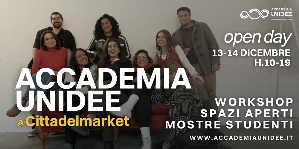 L'Accademia Unidee sarà tra i protagonisti dell'iniziativa aprendo i suoi spazi, visitabili durante tutto l'evento. Saranno proposte, in primis, le mostre degli studenti in Universario: il progetto finale di Gabriel Croso e i lavori degli studenti del corso di arte contemporanea e del corso di moda sostenibile. Previsti poi numerosi workshop di arte: il laboratorio disegno dal vero con modello vivente con Zeinab Moussavi sabato alle 10 in Universario; un altro di ceramica e modellazione con Luz J. Carollo domenica alle 10 nel laboratorio di Arte; il terzo, Green Screen "Make your Christmas Video", con Gabriel Croso sabato dalle 15 alle 19 in Universario. Per quanto concerne la moda, sono in programma due laboratori di sartoria - Crea il tuo kimono - con Anastasia Raccuglia e Giorgia Carnaghi, sabato e domenica alle 15.30 al laboratorio di moda. Per partecipare ai laboratori si può iscriversi sul posto ma è consigliata la prenotazione scrivendo a: +39 391 773 0930 - orientamento@accademiaunidee.it. Nella due giorni sarà inoltre attivo un doppio punto informazioni agli ingressi dell'Universario e del Laboratorio Arte.