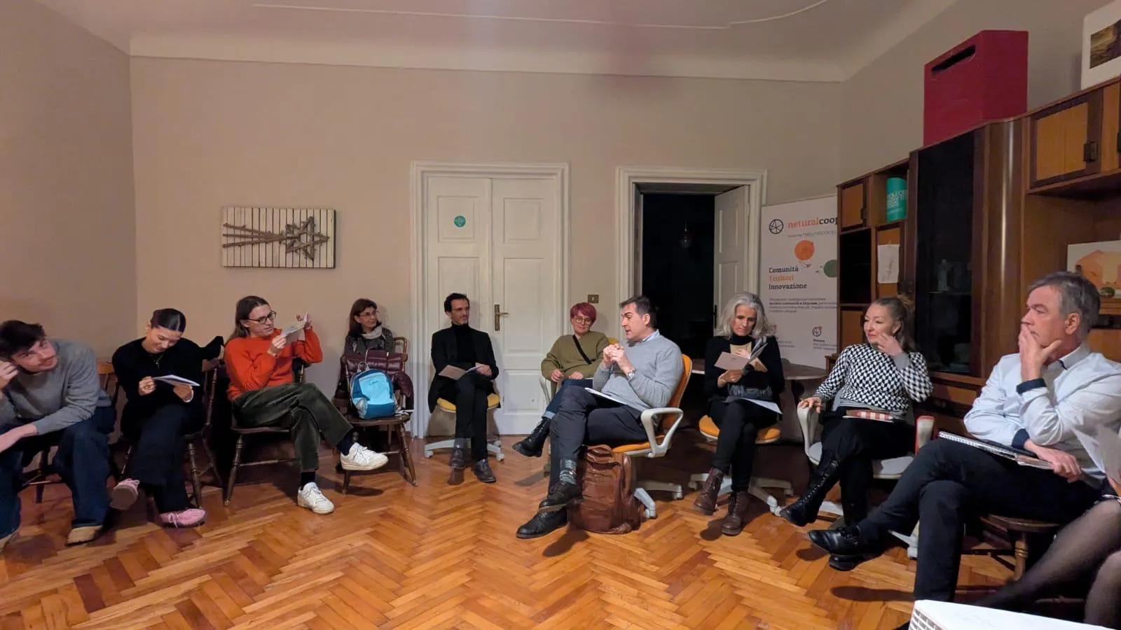 Ora però, in questo Cantiere si vede all’opera qualcosa di più profondo: l’arte della demopraxia. Questa pratica artistica e politica costruisce i suoi Cantieri seguendo un canovaccio che abbiamo già sperimentato in numerosi altri contesti: una prima Scena di Mappatura, in cui si riconoscono attori, tensioni, desideri e conflitti; una seconda Scena di Forum, dove queste energie vengono messe in dialogo al fine di generare intelligenza collettiva, nella definizione di una visione condivisa per il futuro della comunità e di una serie di azioni e progetti; e una terza Scena di Cantiere, in cui il confronto si traduce in forma di infrastruttura operativa.