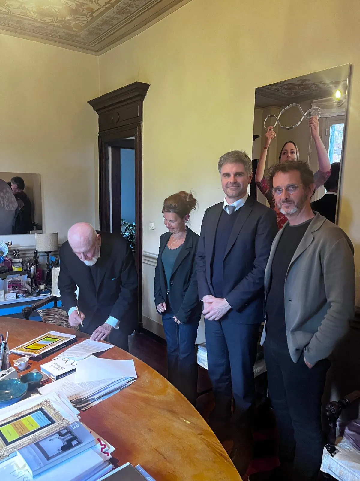 Un’alleanza educativa che conferma il proprio impegno per le nuove generazioni: il 14 aprile, negli spazi della Fondazione Pistoletto, è stato ufficialmente rinnovato l’Accordo Quadro quinquennale che vede convergere istituzioni scolastiche, realtà del terzo settore e Cittadellarte. A sottoscrivere l’intesa sono stati Michelangelo Pistoletto e Paolo Naldini per la Fondazione, Umberto Pelassa per l’Ufficio Scolastico Territoriale di Cuneo, insieme all'artivatrice del Terzo Paradiso Sonia Barale e Massimo Deidda per le realtà associative coinvolte.