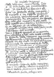 Per sentirsi unita e intendersi praticamente l’umanità necessita del simbolo primario. Con la formula della creazione il “simbolo” dell’accordo umano si identifica nella realtà fisica dell’esistente.