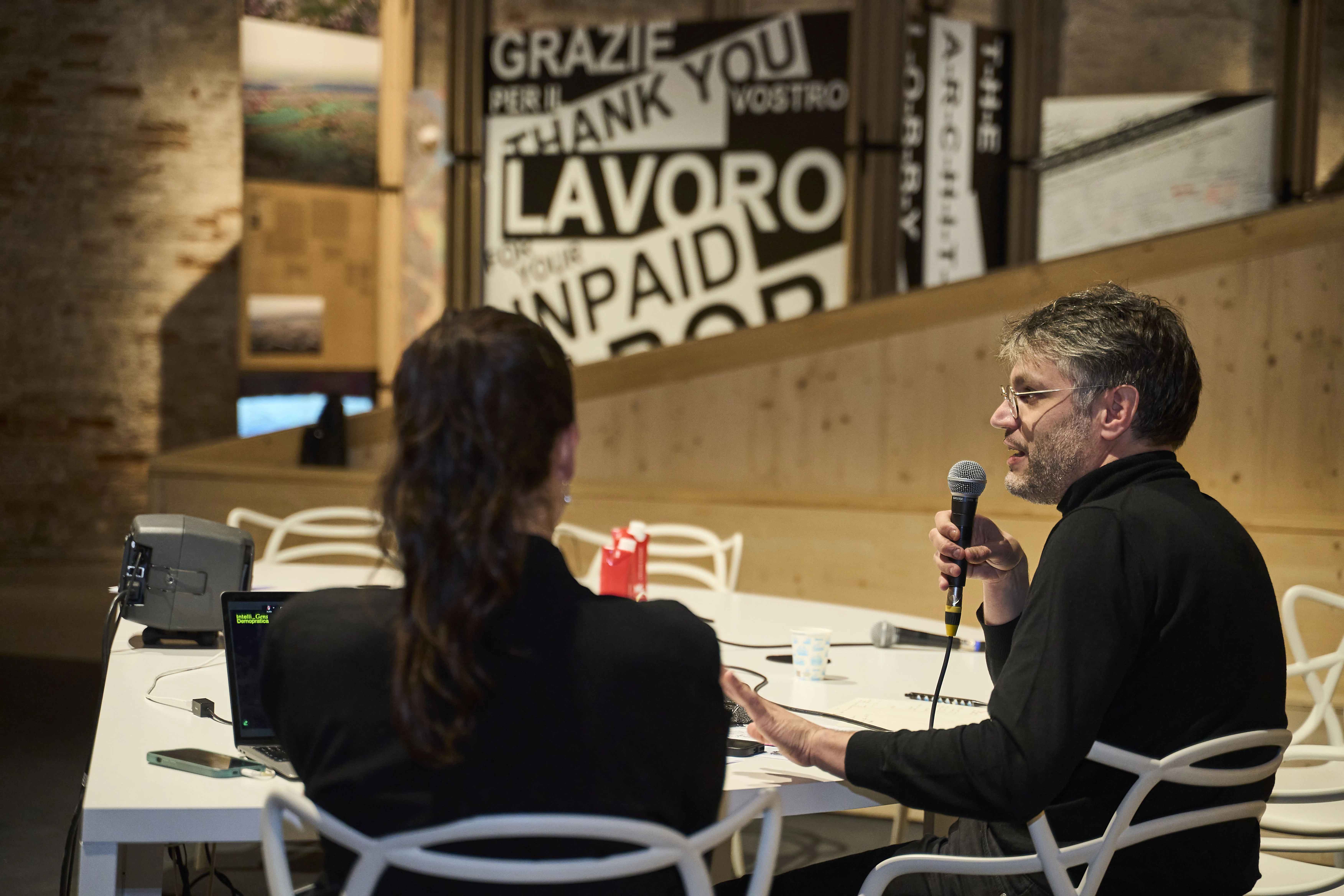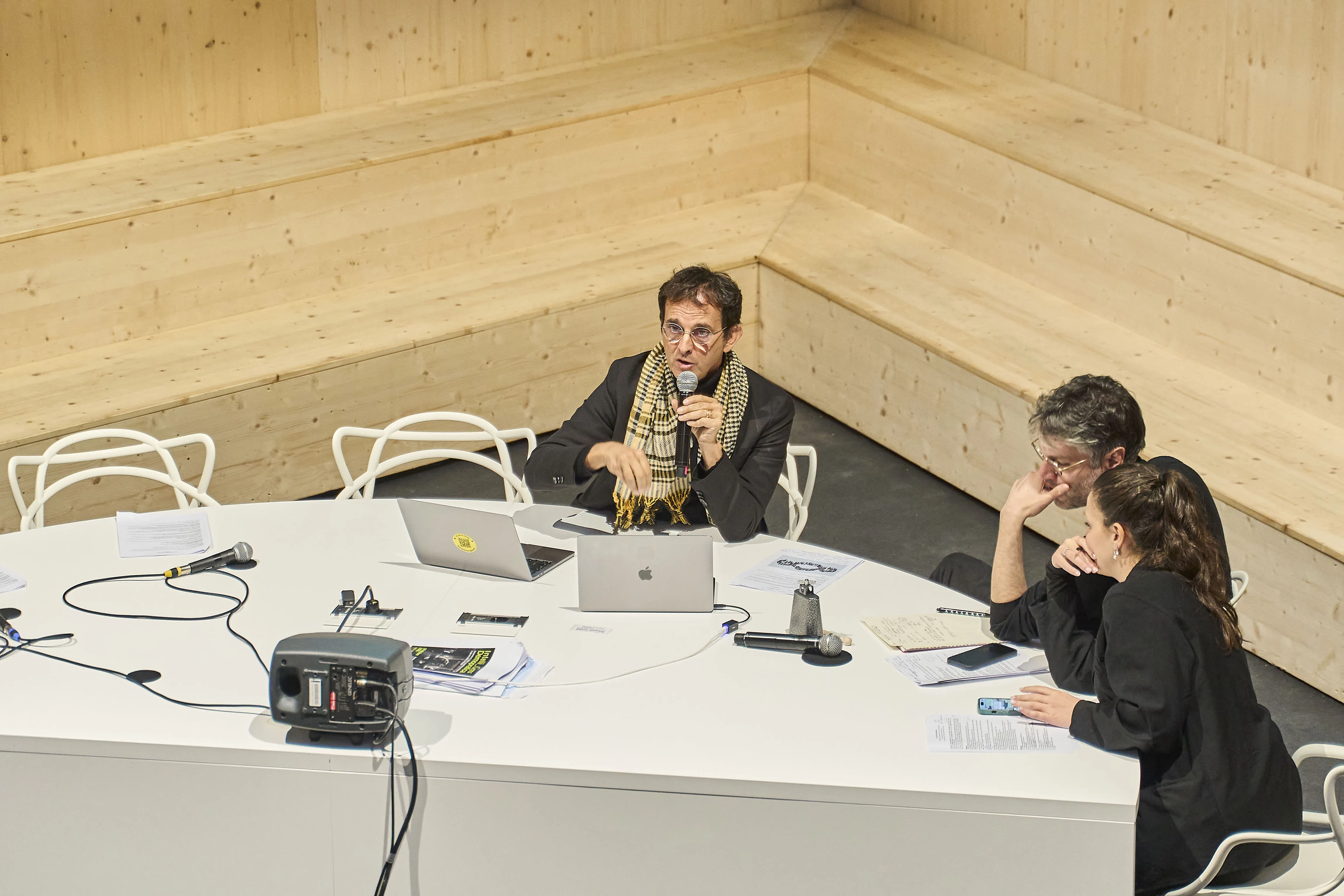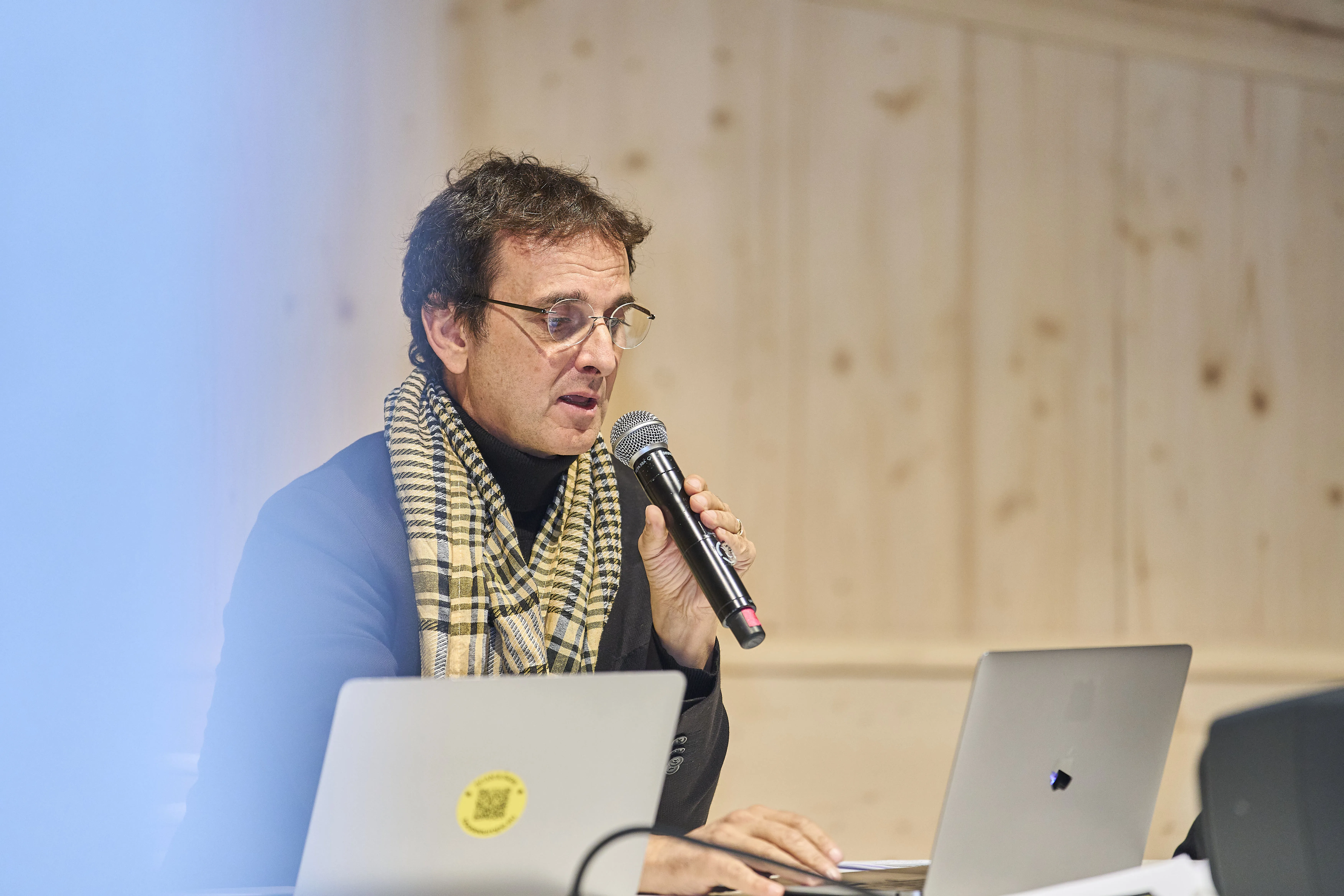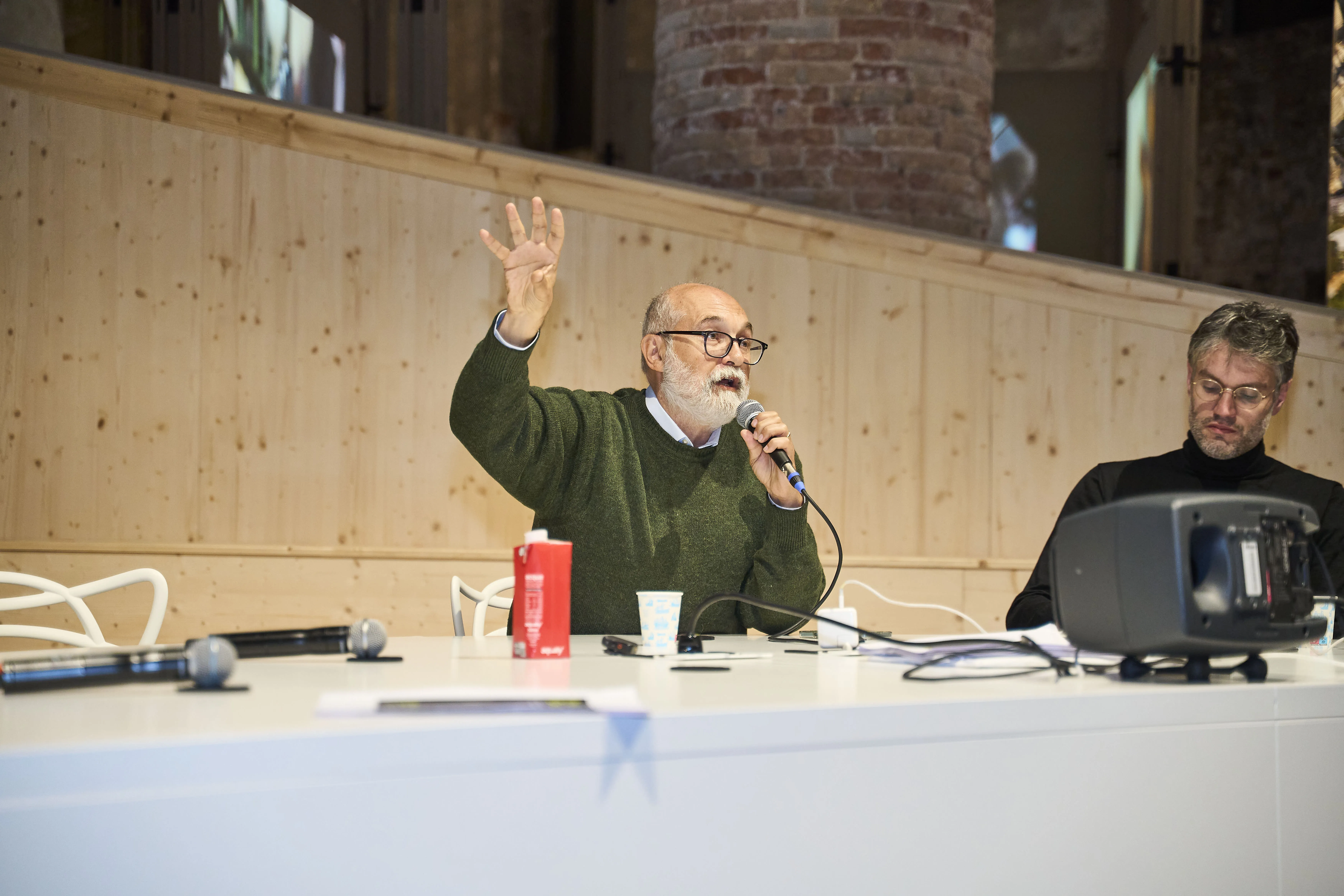 Come da programma, ha poi raggiunto i relatori il presidente della Fondazione La Biennale di Venezia Pietrangelo Buttafuoco, che ha offerto una riflessione sul significato dello Speakers’ Corner, spazio voluto dal curatore Carlo Ratti per ospitare momenti di dialogo e confronto all’interno della Biennale. “Questo luogo mi esalta – ha affermato – perché permette che ciò che viene mostrato e raccontato, anche in forma di predizione, diventi esperienza viva dei saperi e delle competenze, generando un confronto continuo. È proprio questo esercizio della praxis che conduce ciascuno di noi verso una consapevolezza interiore”. Buttafuoco ha poi ampliato la sua riflessione al rapporto tra memoria, politica e comunità, sottolineando come camminare nelle città significhi immergersi in una memoria collettiva, in un tessuto di esperienze che unisce passato e presente. Richiamando la dimensione del politico come pratica quotidiana, ha poi riconosciuto la fatica degli amministratori, chiamati a misurarsi con l’immanenza dell’opinione pubblica e a orientarla verso una prassi costruttiva. “È un esercizio ingrato – ha aggiunto – quello di saper orientare l’opinione pubblica verso un fare condiviso, una prassi che costruisca davvero comunità.” Da questa riflessione è emerso un invito alla trasformazione dei cittadini in comunità pensante, capace di unire sentimento e ragione. Buttafuoco ha citato l’esempio di L'Aquila, città simbolo di rinascita e coesione dopo i terremoti che l'hanno colpita, dove “il sentimento pensante ha generato una nuova consapevolezza nel rapporto con la natura e con la politica”. Il suo intervento si è chiuso con una provocazione densa di significato, che suona come un monito e una visione: “Meno avvocati, più ingegneri”. Una frase che sintetizza l’urgenza di passare dalle parole alle costruzioni concrete, dall’interpretazione alla creazione.