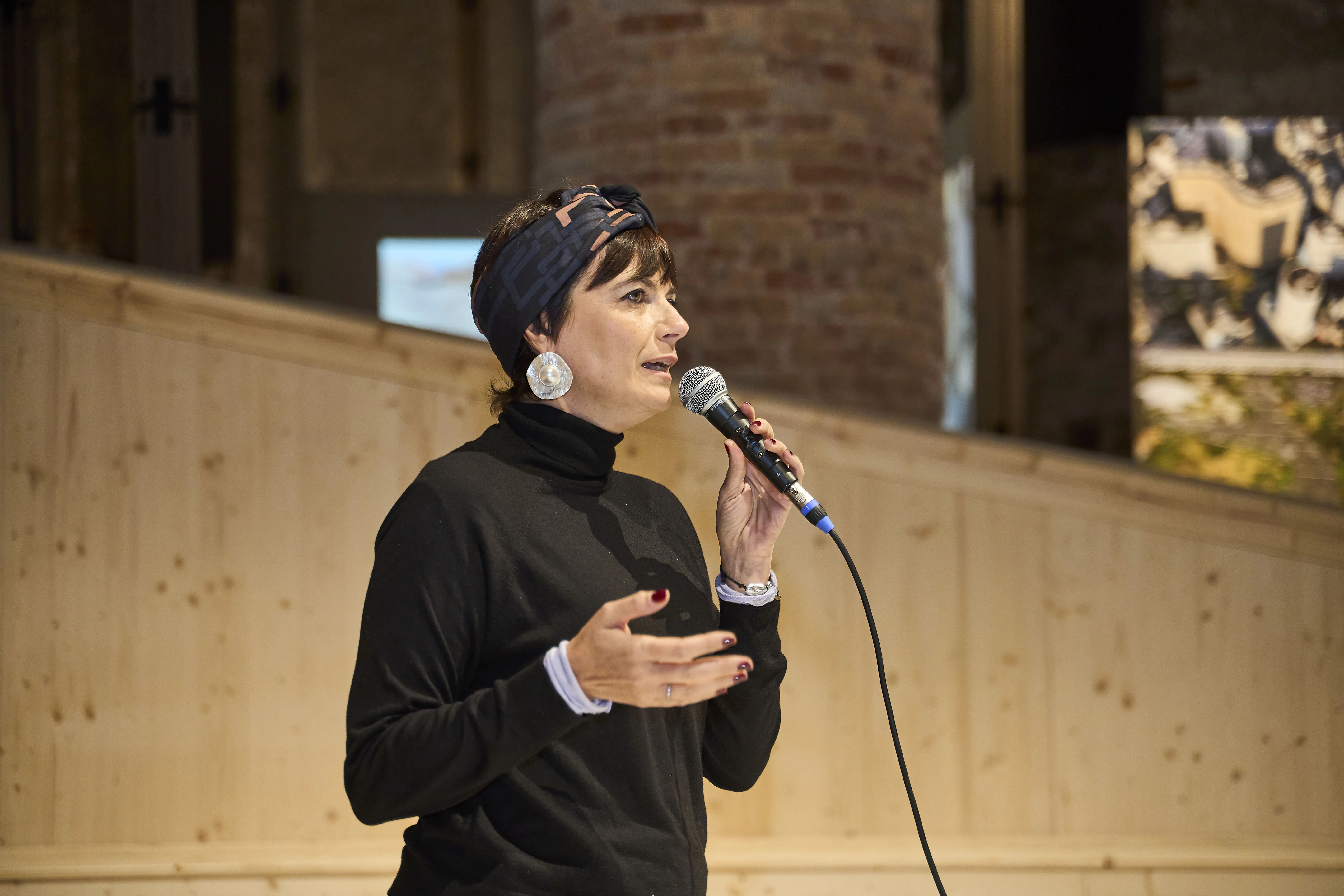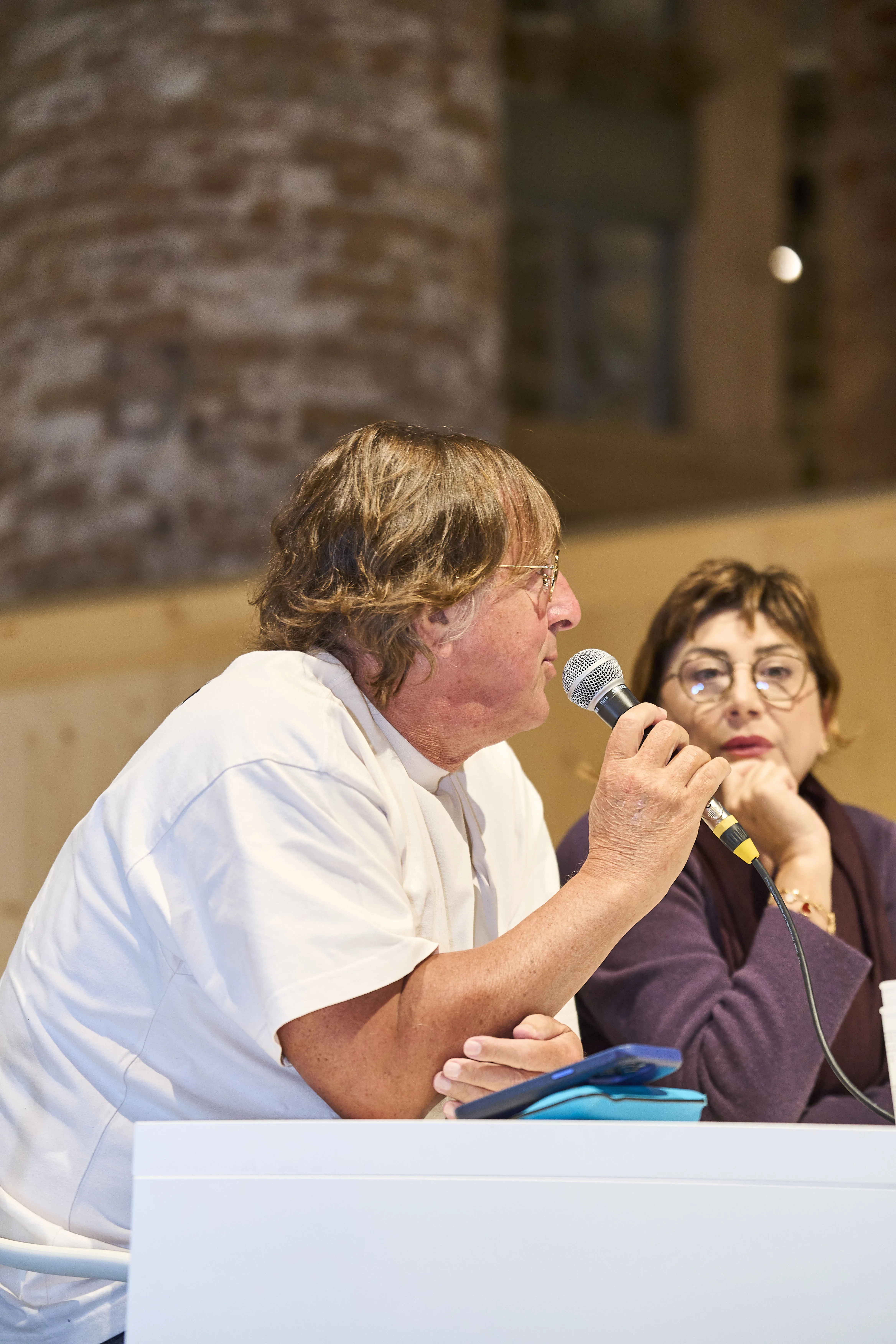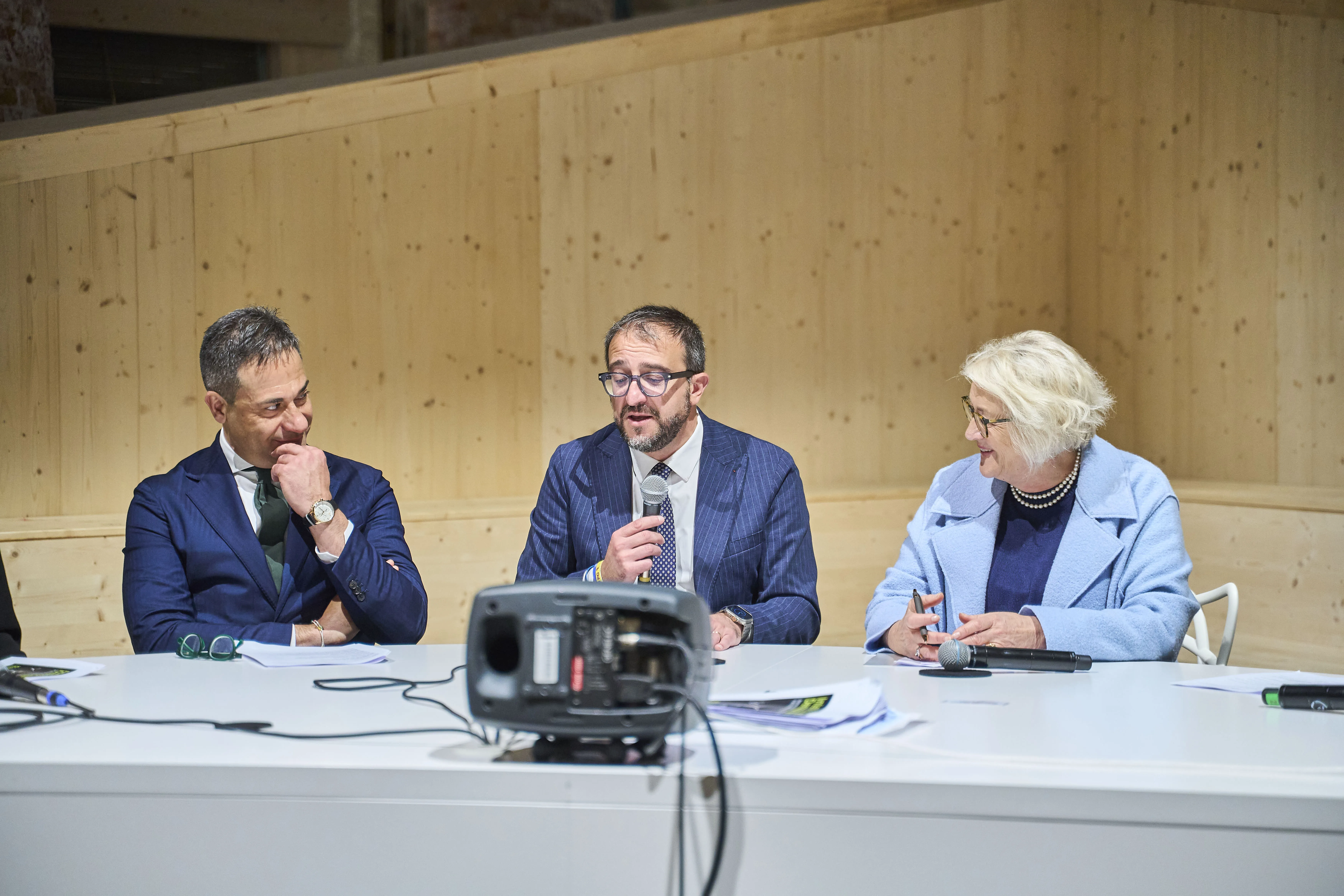 Ad aprire la giornata è stata Giuliana Setari, presidente di Cittadellarte, che ha voluto sottolineare il valore simbolico e prospettico di questa edizione della Biennale Architettura, definendola “una delle più belle finora realizzate, capace di offrire una visione del futuro che ci rassicura e ci ispira". Nel suo intervento ha ricordato come l’installazione del Terzo Paradiso, collocata all’ingresso della Biennale, rappresenti una prospettiva di speranza e trasformazione, un segno concreto di partecipazione collettiva e di fiducia nelle possibilità del cambiamento sociale. “Questa opera – ha spiegato – è il frutto di un lavoro condiviso, a cui hanno partecipato molte persone, simbolo di una comunità che si riconosce nell’arte come forza rigeneratrice”. Rivolgendo un ringraziamento sentito ai sindaci delle città italiane presenti, Setari ha poi ricordato come la presenza di Cittadellarte alla Biennale abbia ottenuto un riconoscimento significativo: il progetto “Statodellarte” è stato infatti inserito nel percorso delle Intelli_Gens Canon, tra gli esempi di pratiche da conoscere e da cui apprendere. Nel suo speech ha ripercorso brevemente la storia e la mission della Fondazione, ricordando che “oltre venticinque anni fa, quando nacque Cittadellarte, non era affatto comune parlare quotidianamente di pace, cultura e sostenibilità”.