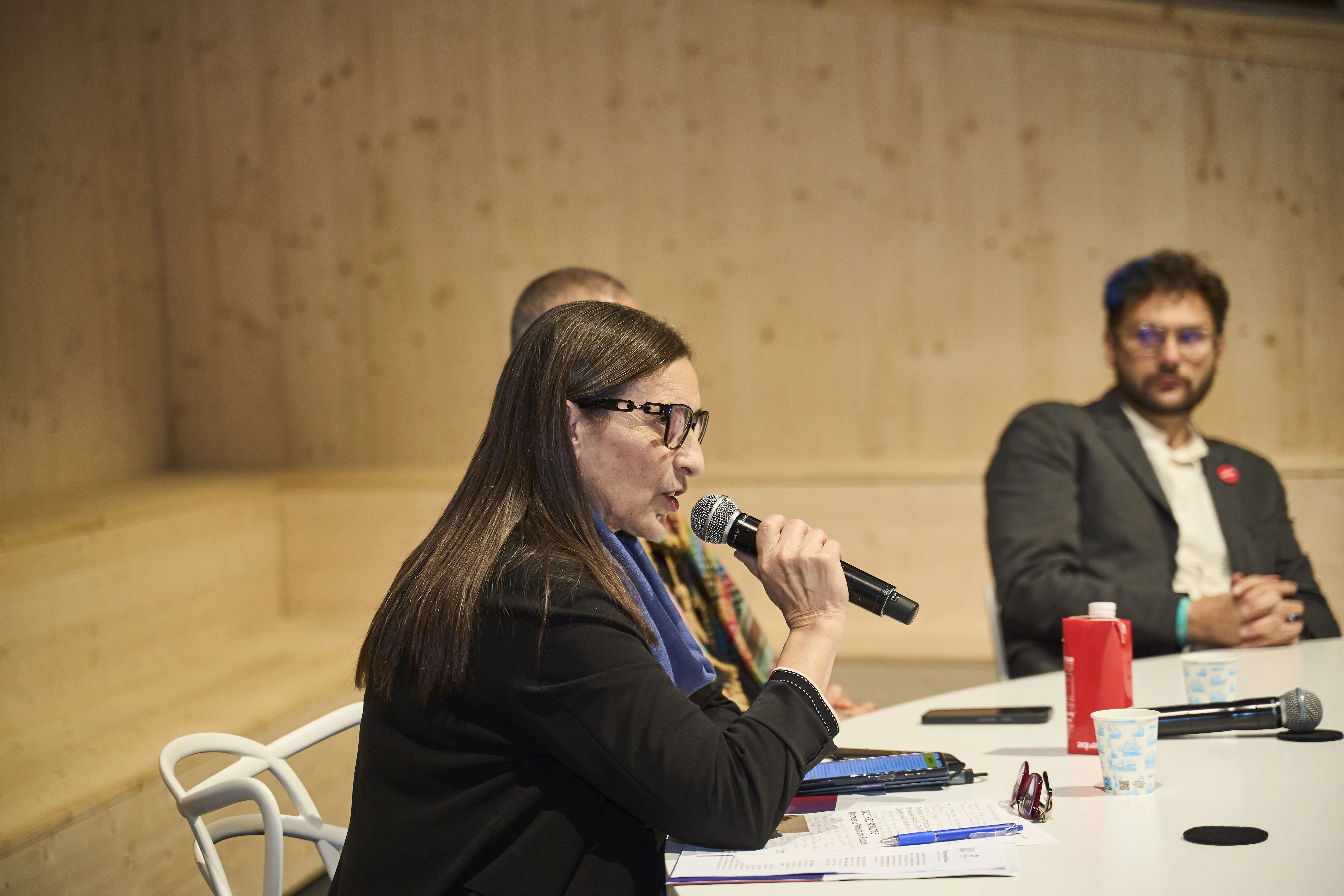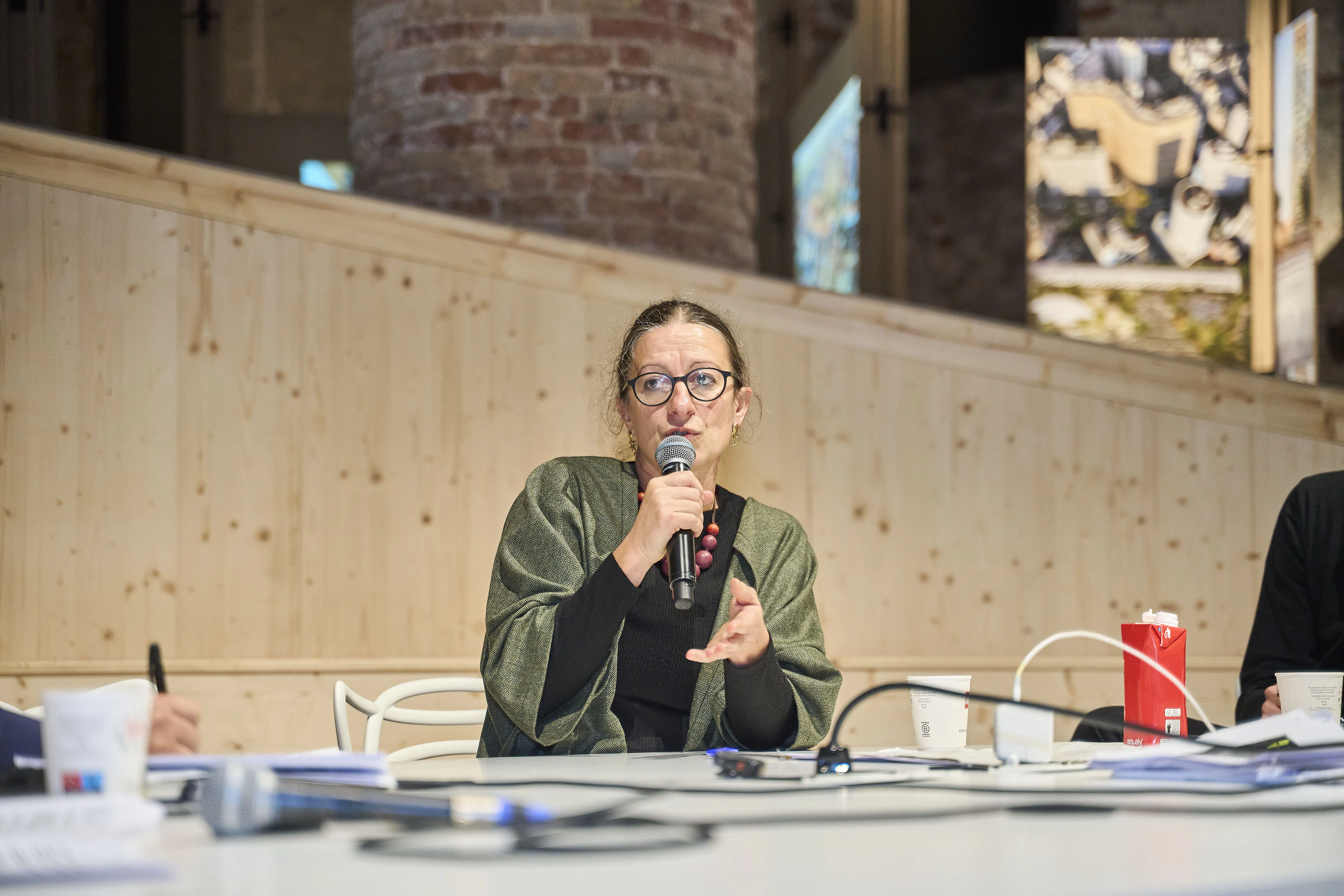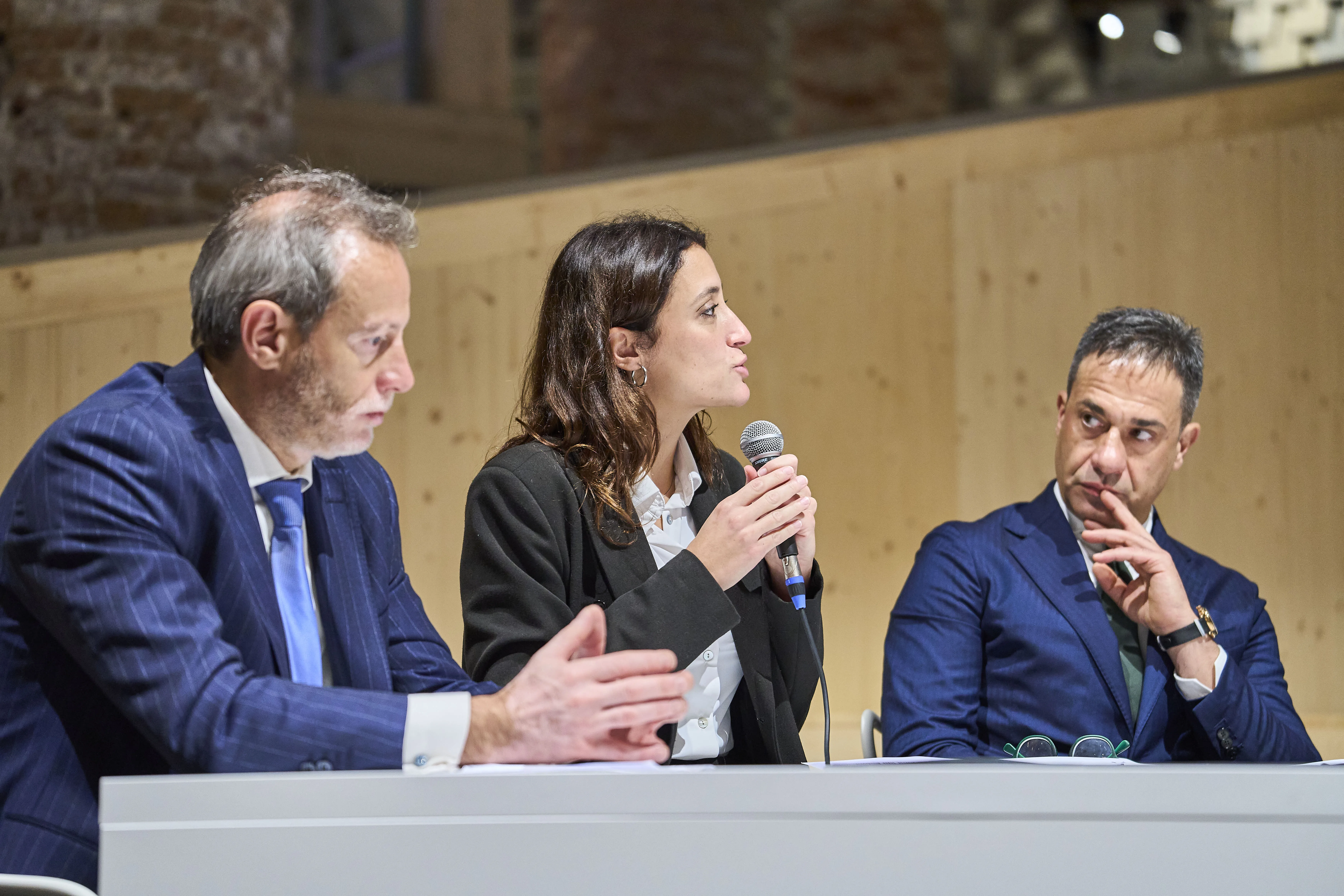 Ad aprire la giornata è stata Giuliana Setari, presidente di Cittadellarte, che ha voluto sottolineare il valore simbolico e prospettico di questa edizione della Biennale Architettura, definendola “una delle più belle finora realizzate, capace di offrire una visione del futuro che ci rassicura e ci ispira". Nel suo intervento ha ricordato come l’installazione del Terzo Paradiso, collocata all’ingresso della Biennale, rappresenti una prospettiva di speranza e trasformazione, un segno concreto di partecipazione collettiva e di fiducia nelle possibilità del cambiamento sociale. “Questa opera – ha spiegato – è il frutto di un lavoro condiviso, a cui hanno partecipato molte persone, simbolo di una comunità che si riconosce nell’arte come forza rigeneratrice”. Rivolgendo un ringraziamento sentito ai sindaci delle città italiane presenti, Setari ha poi ricordato come la presenza di Cittadellarte alla Biennale abbia ottenuto un riconoscimento significativo: il progetto “Statodellarte” è stato infatti inserito nel percorso delle Intelli_Gens Canon, tra gli esempi di pratiche da conoscere e da cui apprendere. Nel suo speech ha ripercorso brevemente la storia e la mission della Fondazione, ricordando che “oltre venticinque anni fa, quando nacque Cittadellarte, non era affatto comune parlare quotidianamente di pace, cultura e sostenibilità”.