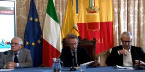La conferenza stampa. Nella prima foto, da sinistra, Lucidi, Manfredi e Trione.
