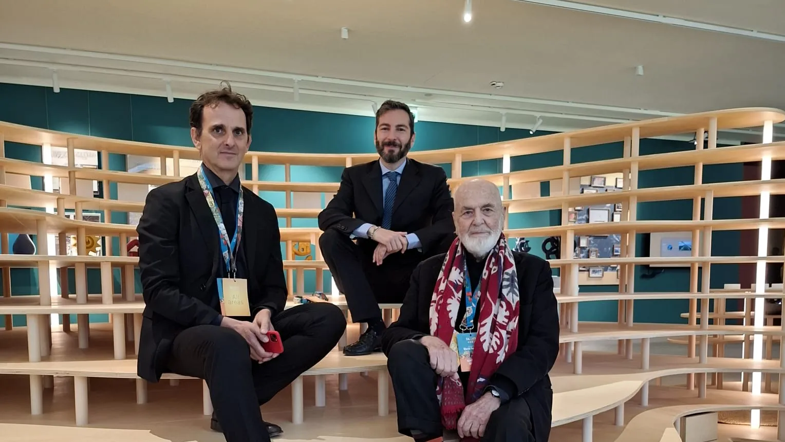 Il Rebirth Day a Latina Un'installazione di dimensioni monumentali (110 metri quadrati di superficie, per una lunghezza di 21 metri) che ha portato sul suolo pubblico i valori della trinamica, oltre al pensiero filosofico e artistico di Michelangelo Pistoletto: il riferimento è all'opera presentata il 21 dicembre a Latina, in Piazza Berlinguer, nel contesto del Rebirth Day. Si è tratta di una pittura pavimentale realizzata nelle giornate del 16 e del 17 dicembre dalla classe 2^ H del Liceo Artistico Buonarroti di Latina, accompagnata dal professor Pierluigi Adamo, con il coordinamento di Francesco Saverio Teruzzi, coordinatore degli Ambasciatori del Terzo Paradiso, e di Jamila Campagna, ambasciatrice del Terzo Paradiso per la città di Latina dal 2023 e referente de IL MURO. Per lo sviluppo spaziale dell’opera gli studenti sono stati guidati dagli architetti Marcello Campagna e Giovanna Di Monaco, mentre per la resa grafica e pittorica sono stati affiancati da alcuni artisti di Latina, ossia Piera Vertecchi, Paola Acciarino, Eleonora Bompieri e dall’architetto Massimo Palumbo. La scelta dei colori per il Terzo Paradiso di Latina richiama la natura e in particolare le caratteristiche del territorio pontino, con un’onda azzurra da un lato, a ricordare il mare, e un’onda verde dall’altro lato, a indicare la campagna dell’entroterra ma anche il verde urbano. Le vernici utilizzate sono ecologiche e di ultima generazione, perfette per garantire la buona tenuta dell’opera nel tempo.