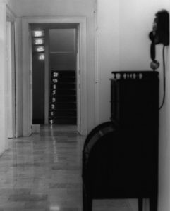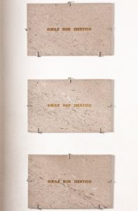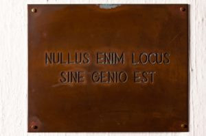 Di Giulio Paolini abbiamo una targa con scritto “Nullus Enim Locus Sine Genio Est” posizionata nel vano di una porta.