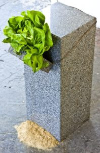 granito, lattuga, filo di rame, segatura, 90 x 40 x 40 cm.
