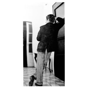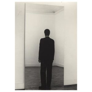 (nella foto: Michelangelo Pistoletto seduto di fronte all’opera, Torino, 1962)