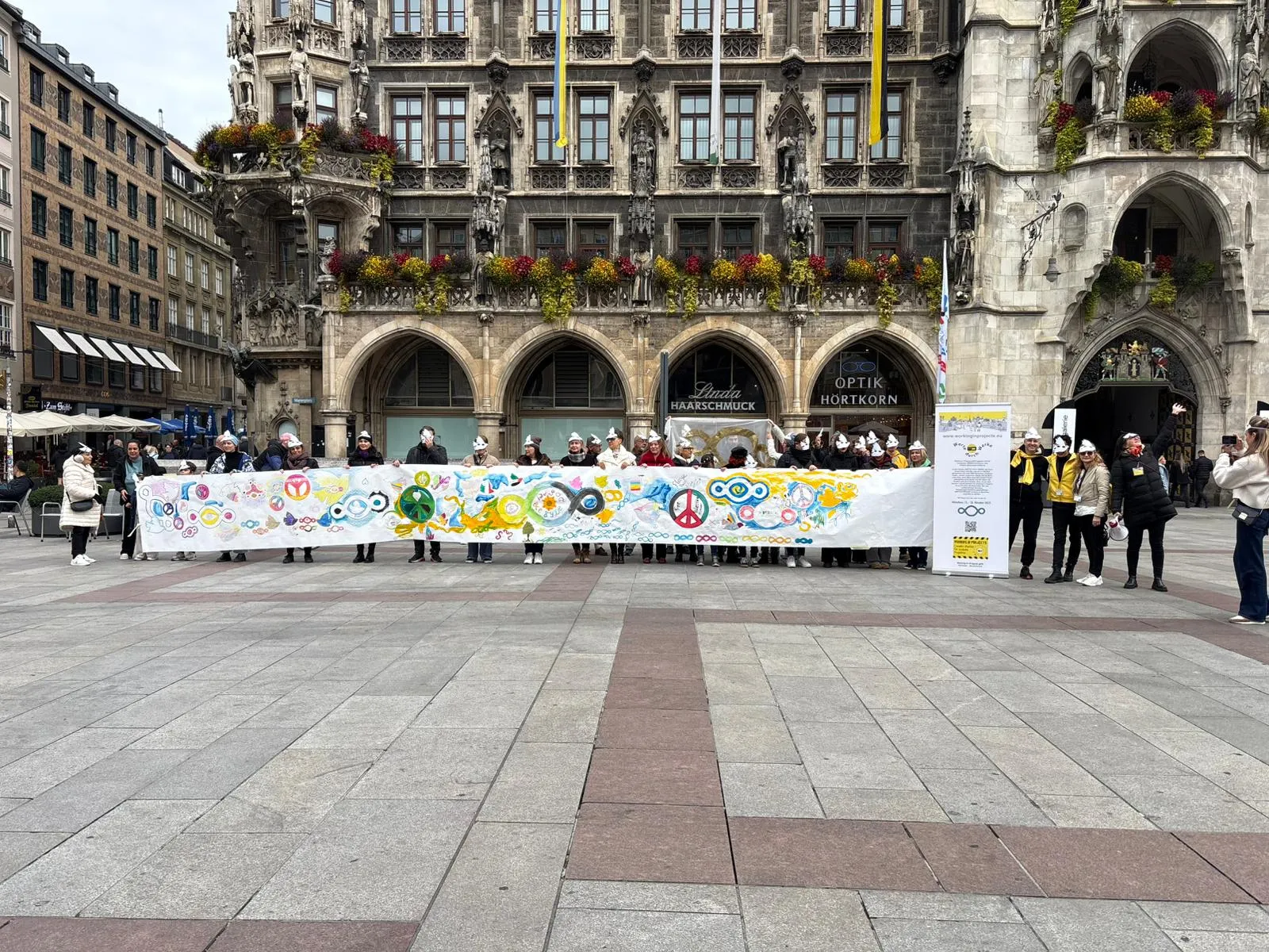 Il 18 ottobre, la rassegna si è conclusa in Marienplatz con una partecipatissima performance collettiva: una grande catena umana, riunita in forma di Terzo Paradiso, che ha coinvolto famiglie, studenti, passanti e visitatori, rendendo visibile e condivisa l’idea di pace preventiva.