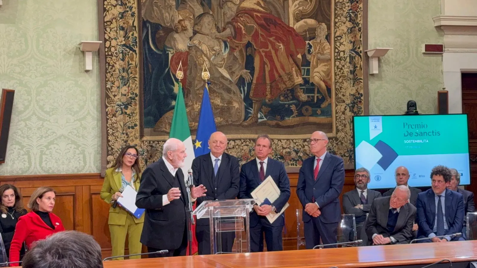 La cerimonia del Premio De Sanctis per la Sostenibilità, giunta alla sua seconda edizione, si è tenuta ieri sera a Roma, nella Sala Verde di Palazzo Chigi. Organizzato dalla Fondazione De Sanctis, l’evento è promosso in collaborazione con il Ministero dell’Ambiente e con la Presidenza del Consiglio dei Ministri. Il premio mira a riconoscere persone, enti, imprese e progetti che si sono distinti per un impegno concreto e multidisciplinare: dalla tutela ambientale all’innovazione sociale, fino alla qualità culturale.