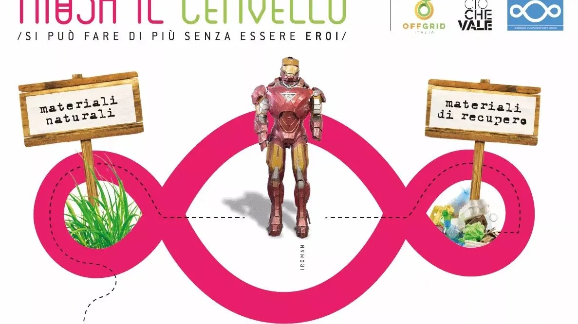 Nel contesto dell'iniziativa "Cambiano come Montmartre" (tutti i dettagli in un nostro precedente articolo), è andata in scena una performance dedicata al Terzo Paradiso ed è in questo frangente che ha fatto un'apparizione il supereroe, o meglio una sua rappresentazione. L'iniziativa artistica, dall'evocativo titolo “Si può fare di più senza essere eroi: riusa il cervello”, si è fatta portatrice di un messaggio di sostenibilità, comunicato attraverso il segno-simbolo di Michelangelo Pistoletto. Nel primo cerchio i materiali naturali, nel secondo quelli di recupero, e nel terzo cerchio, quello centrale, Iron Man, con un'armatura realizzata con materiale di scarto e rifiuto.L'arte, inoltre, ha comunicato un messaggio di sostenibilità attraverso momenti ludici. “Si può fare di più senza essere eroi: riusa il cervello” era a tutti gli effetti un gioco. Ecco alcuni dettagli: l'attività era aperta a tutti, adulti e bambini; i materiali dell'iniziativa erano oggetti di recupero, elementi naturali e utensili di uso comune; dopo l'iscrizione, i partecipanti dovevano dividersi a squadre (o in singoli) e realizzare oggetti creativi formati dall'assemblaggio di materiali di recupero ed elementi naturali posizionandoli nel cerchio centrale, vicino ad Iron Man. La strategia? Organizzare al meglio i ruoli per recuperare i materiali presenti, riuscendo a ideare e realizzare la propria opera nei tempi previsti (20 minuti). Un'apposita giuria ha infine valutato i lavori con un criterio di creatività.