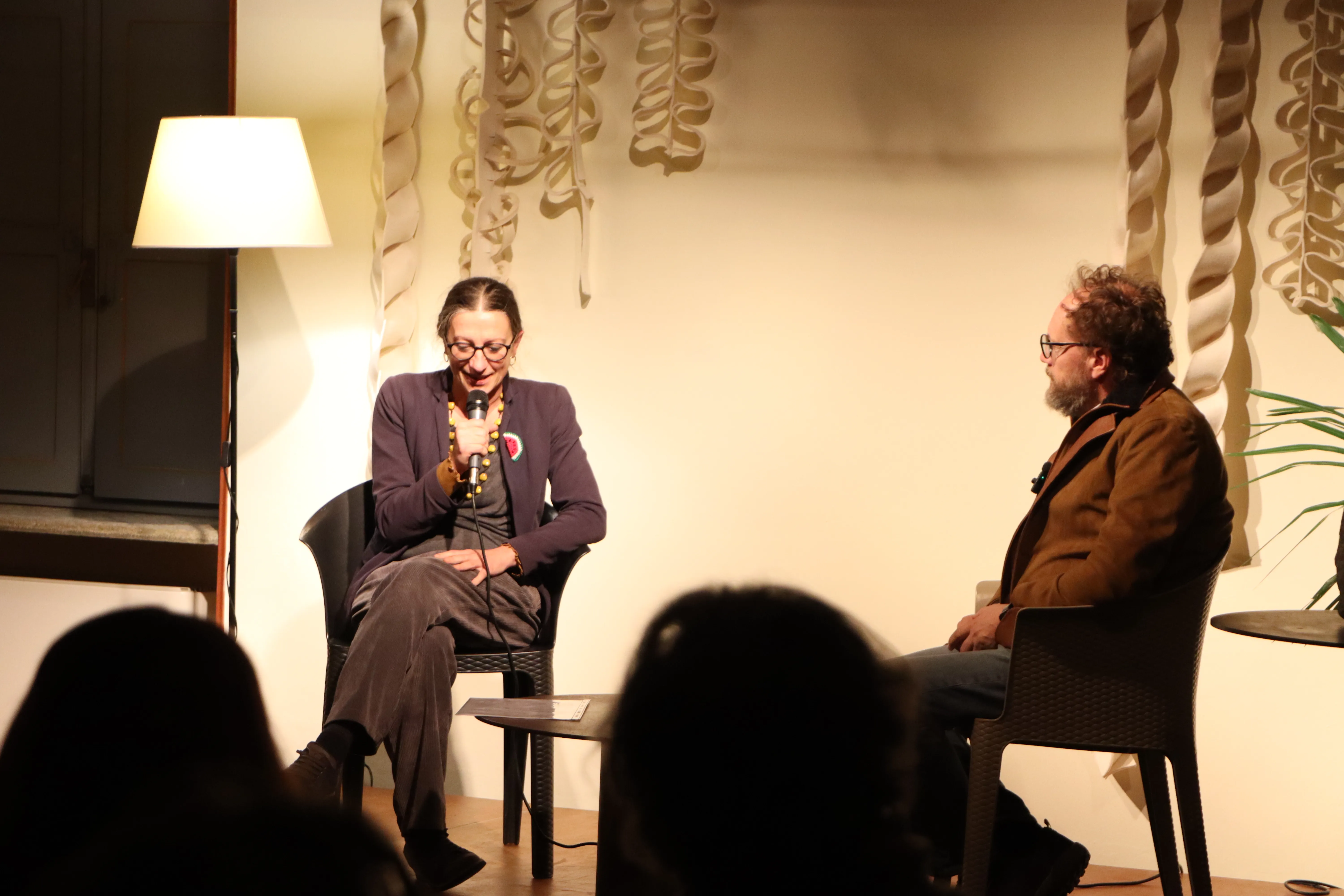 Il dialogo ha toccato anche gli aspetti più letterari dell’opera. Zumaglini, per esempio, ha insistito su un elemento: l’ossessione amorosa del protagonista. "Sebastiano è innamorato di una cantante che non conosce davvero", spiega Naldini. "Non vuole concretizzare quell’amore, ma non riesce a rinunciare all'innamoramento. Lo fa inciampare, ma lo tiene vivo. È una forza fragile e potente al tempo stesso". Quanto al titolo, Good Morning, Palestine, Naldini ha rivelato la sua origine quotidiana: "Quando mi sveglio penso a molte cose, ma tra i primi pensieri c’è sempre ciò che accade a Gaza. Il titolo nasce da lì: dal gesto di rivolgere un saluto mattutino a una realtà che non riesco a ignorare". Parola dopo parola, l'orologio è stato dimenticato, il tempo assorbito. E nessuno se n'è accorto: la presentazione è continuata con le domande del pubblico, numerose, eterogenee e soprattutto partecipate. Un dialogo collettivo che continuava ad alimentarsi.