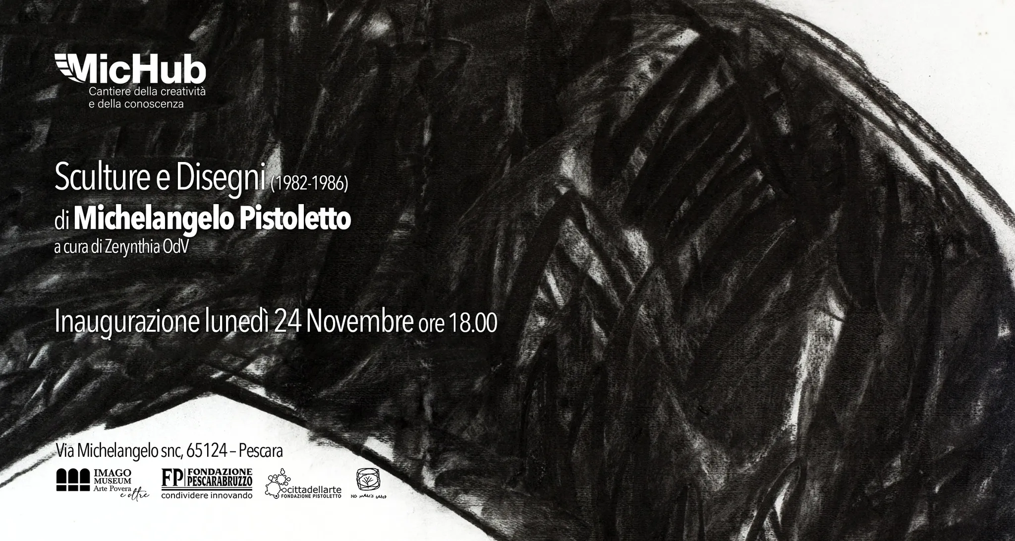 La Fondazione Pescarabruzzo presenta al MicHub – Cantiere della creatività e della conoscenza un nuovo capitolo del progetto Imago Museum / Arte Povera e oltre, dedicato alla ricerca di Michelangelo Pistoletto. Il riferimento è all'inaugurazione della mostra Sculture e Disegni (1982–1986), in programma nel tardo pomeriggio odierno - alle ore 18 - al MicHub, curiosamente ubicato in via Michelangelo, a Pescara. L'iniziativa, a ingresso libero, si pone come occasione per scoprire il nucleo di opere realizzate dall’artista in quegli anni, fondamentali per comprendere la sua cosiddetta Quarta Generazione, raccontata nella pubblicazione Poetica Dura.