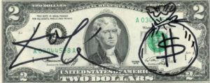 La storia racconta che Salvador Dalì stava visitando l'ambasciatore americano un giorno e gli fu mostrato uno spettacolo di magia. Dali, per nulla impressionato, affermò che poteva fare di meglio. Promise così di trasformare una banconota da un dollaro in una banconota da mille dollari. L'ambasciatore ha raccolto la sfida dandogli una banconota da un dollaro. Dali l'ha afferrata, ha preso una matita dalla giacca, ha firmato la banconota da un dollaro e l'ha restituita all'ambasciatore. Era un trucco, ma era reale, e Dali con la sua firma sulla banconota aveva dimostrato quanto valesse il suo marchio personale.